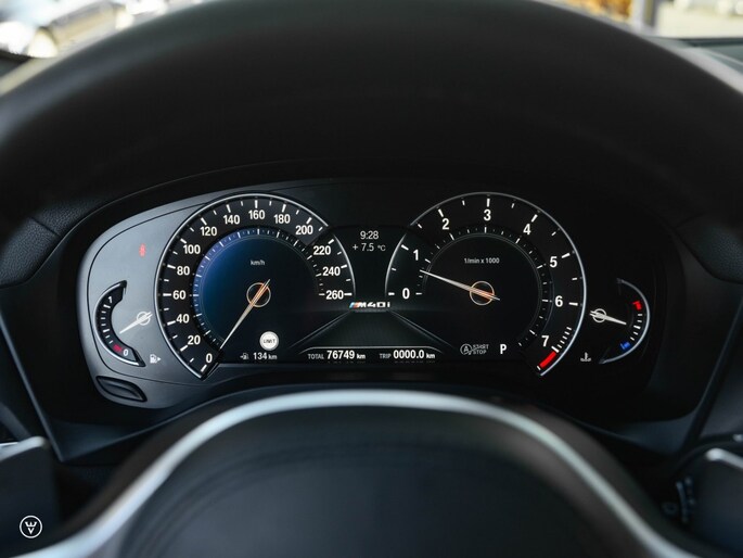 Letterlijk en figuurlijk een beest van een BMW dus, die hier overigens juist opvallend ingetogen en smaakvol aantreed in het zeldzame en zeer chique “Sonnenstein metallic”. Combineert prachtig ton-sur-ton met de in Cerium Grey uitgevoerde details van de M40i, een stemmige verdere afwerking in (hoogglans) zwart binnen en buiten rond het verhaal passend af.