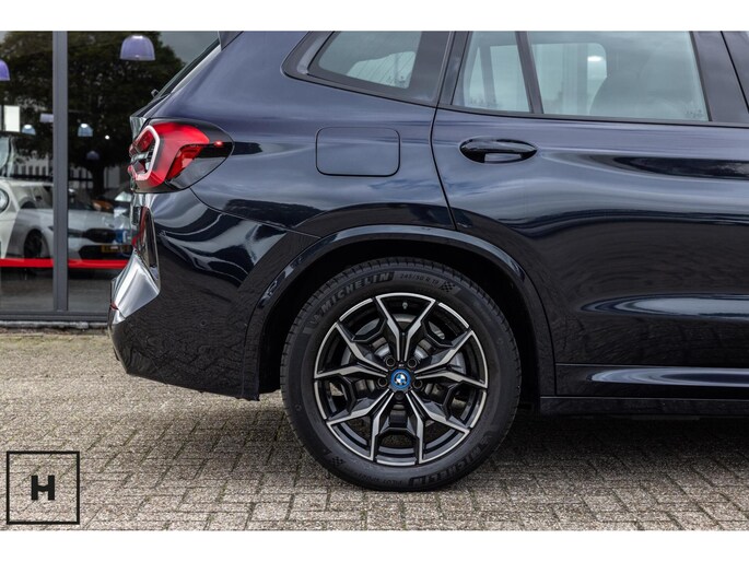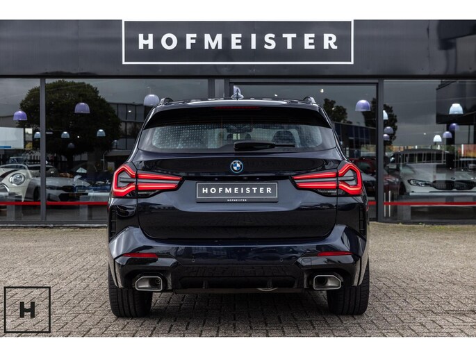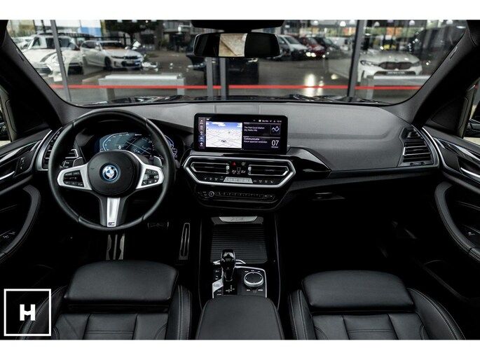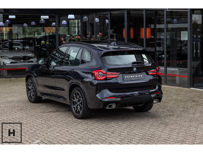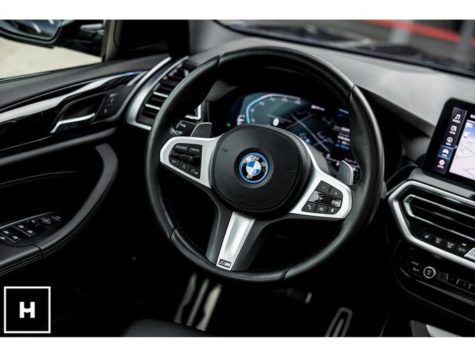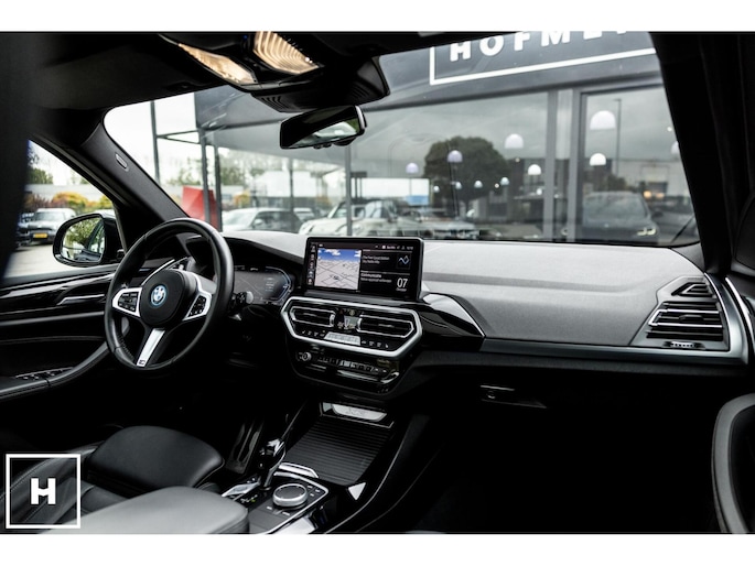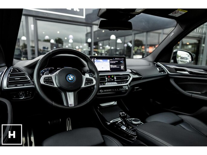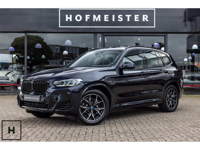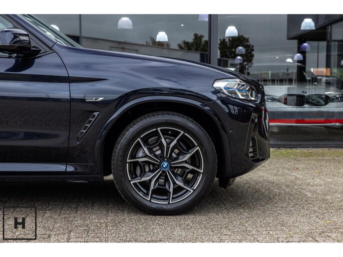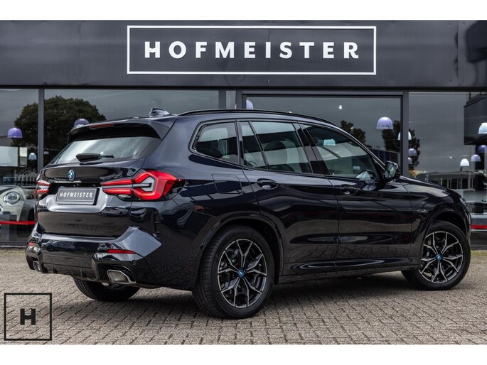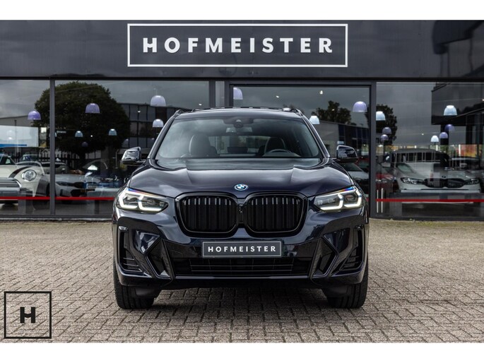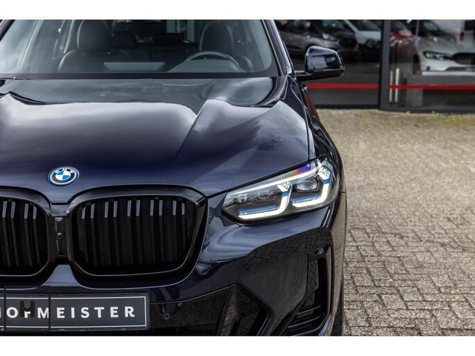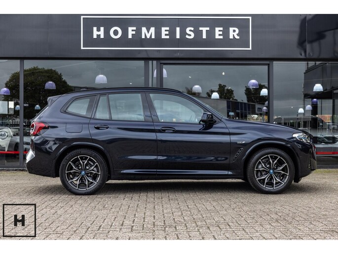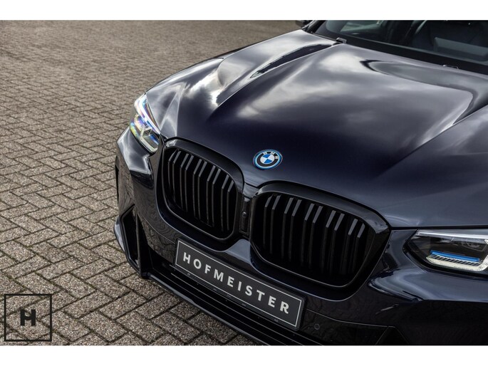 X3 met de gewilde hybride aandrijflijn in de facelift versie (LCI). Snel, zuinig, praktisch. Bij de X3 met M-pakket gaat dat ook nog eens gepaard met een vlot en sportief uiterlijk. In BMW’s signatuur kleur ‘Carbonschwarz’ (feitelijk diep donkerblauw) met hoogglans zwarte accenten komen de verbeteringen van het facelift model goed tot hun recht.