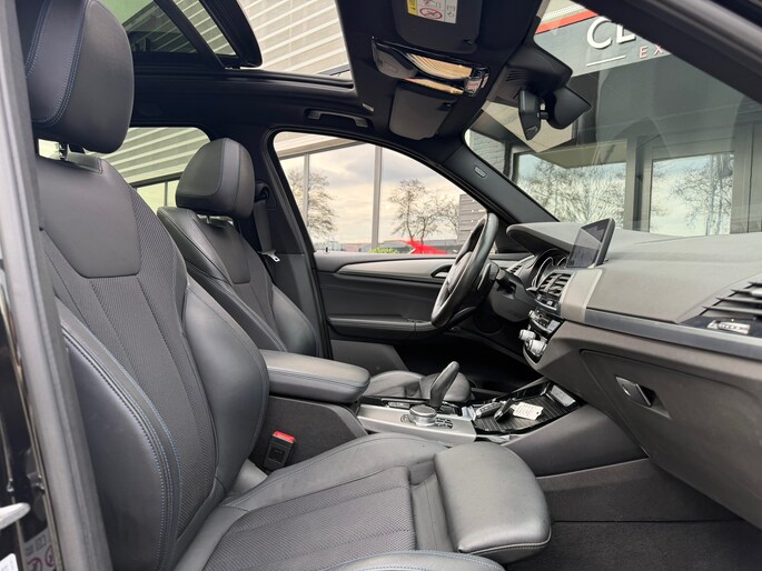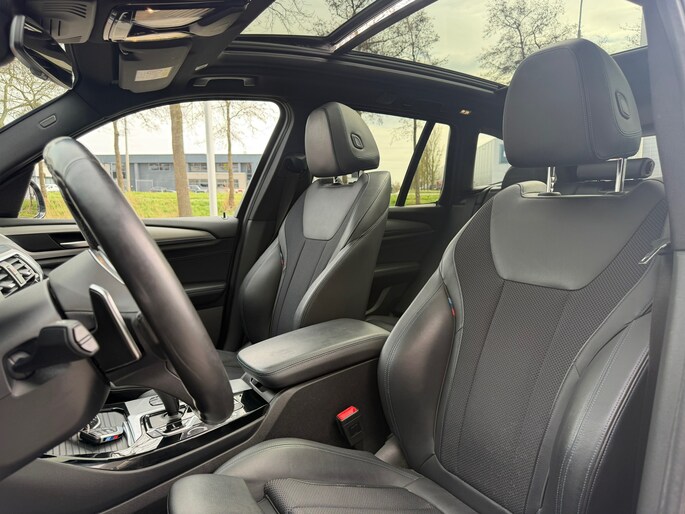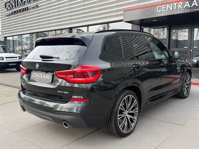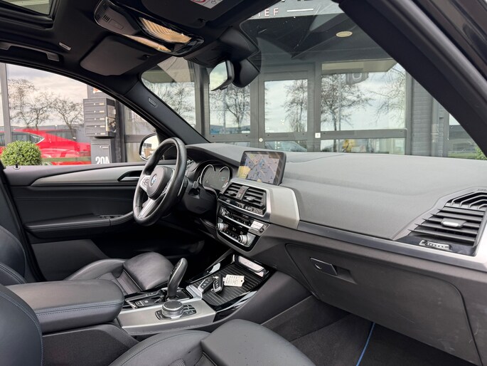 en prachtige en sportieve BMW X3 xDrive30i in de luxe High Executive uitvoering, gecombineerd met het gewilde M-Sport pakket. Deze SUV verkeert in uitstekende staat en is uitgevoerd in de stijlvolle kleur Black Sapphire Metallic, wat de auto een krachtige en chique uitstraling geeft.