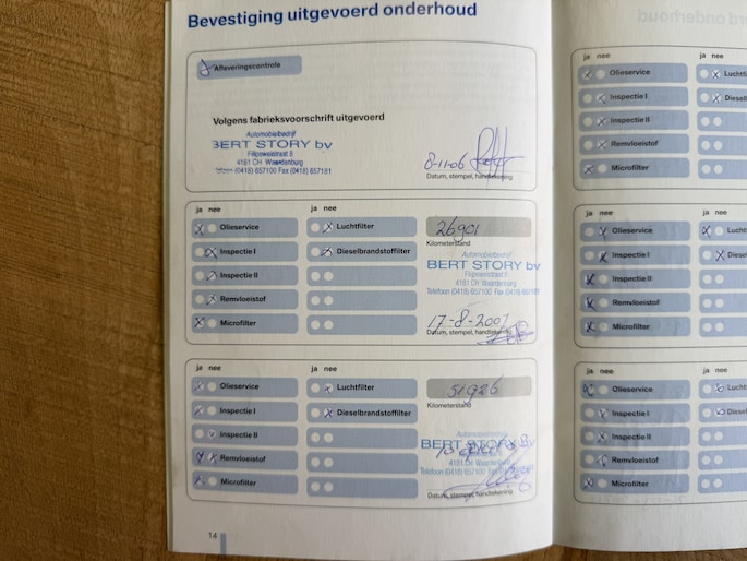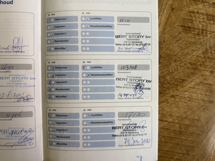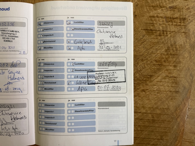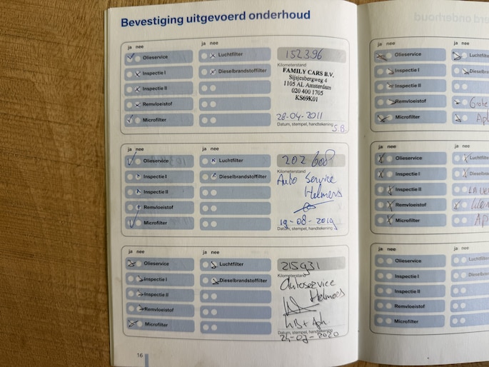 Onderhoudsboekjes: Aanwezig