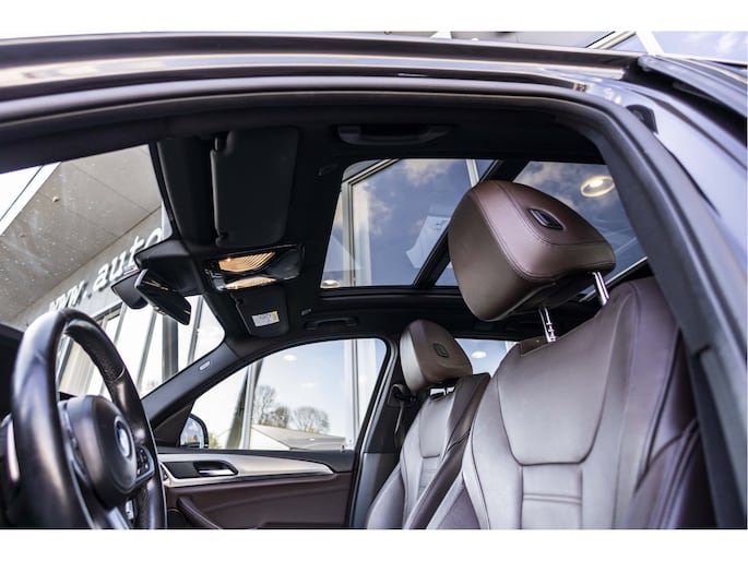 Een hoge mate van degelijkheid, uitstekende wegligging en veel comfort; het zijn unieke eigenschappen waarmee Duitse auto's zich onderscheiden. Dat geldt ook voor deze BMW X3 uit 2019 die 83265 kilometer op de teller heeft staan. De krachtige benzinemotor staat garant voor uitstekende prestaties. Dak dicht? Dan toch volop daglicht door het elektrisch bediende glazen panorama dak. Het lederen interieur ademt luxe en de elektrisch bedienbare achterklep biedt volop gemak. Een weldaad voor u en uw bijrijder: deze BMW X3 heeft verwarmbare voorstoelen. Mooi om te zien en heerlijk om in te zitten zijn de sportstoelen, die u onderweg optimale ondersteuning geven. Xenonverlichting zorgt in het donker voor beter zicht. Natuurlijk behoren 20 inch lichtmetalen velgen, Full LED koplampen, sportonderstel, halflederen bekleding, warmtewerend glas en sportinterieur ook tot de uitrusting van deze complete auto.
