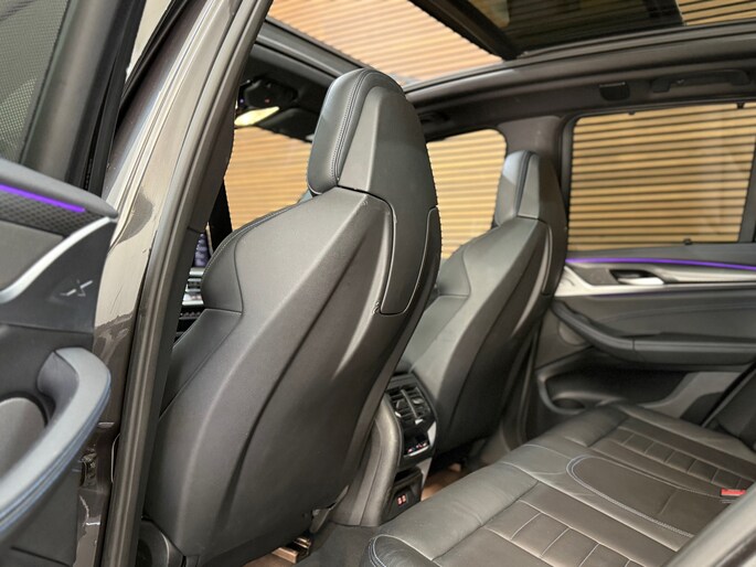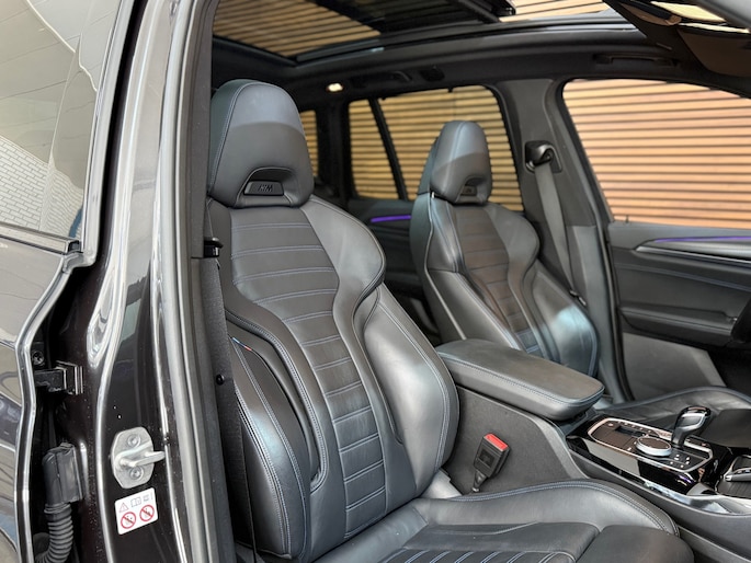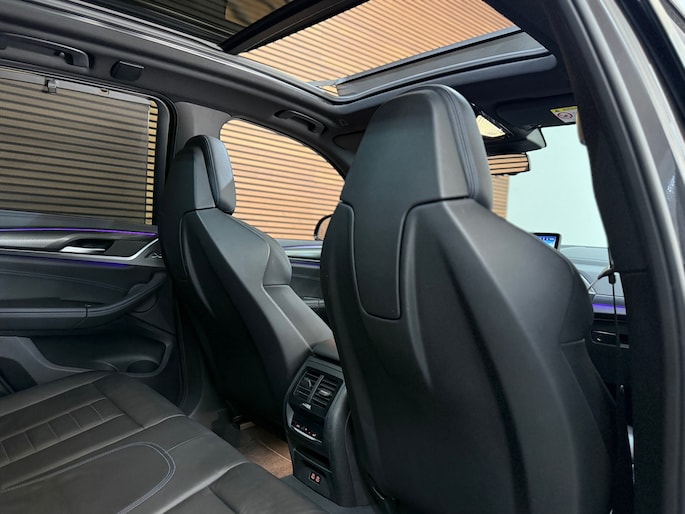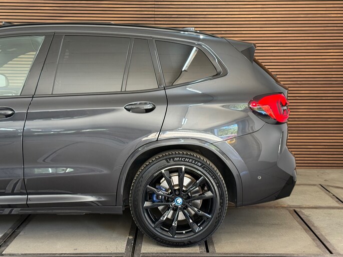 Een bruut uitgevoerde BMW X3 xDrive30e in de prachtige kleur Sophistograu Metallic, volledig uitgevoerd met het M Sport Pro pakket en voorzien van de zeldzame M-Technic schaalstoelen. De combinatie van de diepe grijze lak met alle Shadow-Line hoogglans zwarte accenten maakt dit zonder twijfel dé X3 die je wilt hebben!