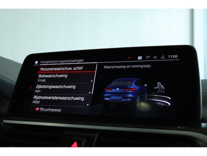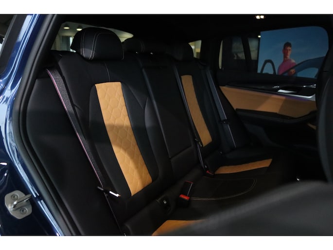 Er zijn mensen die zeggen: het merk maakt me niet uit zolang het maar Duits is. En gelijk hebben ze. Deze auto beschikt over meer dan genoeg motorvermogen. Eén blik naar binnen bewijst het al: pure klasse, onder meer dankzij het lederen interieur. Tijdens gure dagen is het prettig zitten in de verwarmbare voorstoelen. In deze uitvoering is de X4 voorzien van mooie, maar ook functionele sportstoelen. Een heerlijk zonnetje, of indrukwekkende wolkenpartijen? Bekijk ze onbelemmerd door het elektrisch bediende glazen panoramadak. De bagageruimte is toegankelijk via een comfortverhogende elektrische achterklep. Verder is de BMW uitgerust met: 21 inch lichtmetalen velgen, LED koplampen, sportonderstel, adaptief dempingsysteem, warmtewerend glas en in delen neerklapbare achterbank. Altijd de benodigde functies in beeld? Het digitale dashboard zorgt ervoor. Met de 360 graden camera op deze auto wordt parkeren in smalle parkeerplekken een makkie dankzij het optimale zicht dat het apparaat levert. Adaptive cruise control is veilig en comfortabel. De snelheidsregelaar houdt automatisch afstand tot het voertuig dat voor u rijdt. Dankzij Connected Services houdt u de auto nog gemakkelijker in topconditie. Elke dag. De Harman/Kardon audioinstallatie zorgt voor een krachtige en zuivere klankweergave. Ook dashboard met spraakbediening, Harman Kardon-audiosysteem, navigatiesysteem met harde schijf, WIFI-hotspot, achteropkomend verkeer waarschuwing en kruisend verkeer detectie zijn aan boord. Het rijden met deze BMW wordt nog meer ontspannen dankzij de innovatieve technieken die onderweg over uw veiligheid waken. Hou de weg in het vizier! De head-up display zorgt dat u de dashboardinfo in beeld geprojecteerd krijgt. De actuele snelheidslimiet, een inhaalverbod en andere verkeersborden; de verkeersborddetectie ondersteunt u tijdens elke rit. Met het Lane-keeping systeem komt u nooit per ongeluk buiten de rijstrook. De veiligheid van deze auto wordt verder verhoogd door voetgangersbescherming, dodehoekdetector detectiesysteem, forward collision warning system, hill hold functie, brake assist en vermoeidheidsherkenning. Zin om deze sportwagen uit te proberen? Neem contact op en we zetten 'm snel klaar voor een proefrit!