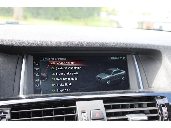 Een auto als de BMW X4 biedt een dynamiek en comfort die typerend zijn voor de producten van de Duitse autofabrikanten. Een viercilinder motor en een automatische transmissie zorgen voor de uitstekende prestaties van deze auto. Dat noemen ze nou een ruimtelijk effect: het elektrisch bediende glazen panorama dak, dat net zo gemakkelijk open en dicht gaat als de elektrisch bedienbare achterklep. En ondertussen het ware luxegevoel van het lederen interieur. Neem plaats op de comfortabele stoelen. Dankzij de elektrische bediening en het geheugen is het eenvoudig om hierin de beste zitpositie te vinden. Deze BMW X4 is niet zuinig met comfort. Wat dacht u van een verwarmde achterbank? Xenonverlichting zorgt voor een heldere witblauwe lichtkleur en een scherp lichtbeeld. Natuurlijk behoren 18 inch lichtmetalen velgen, sportonderstel, halflederen bekleding en snelheidsafhankelijke stuurbekrachtiging ook tot de uitrusting van deze complete auto.