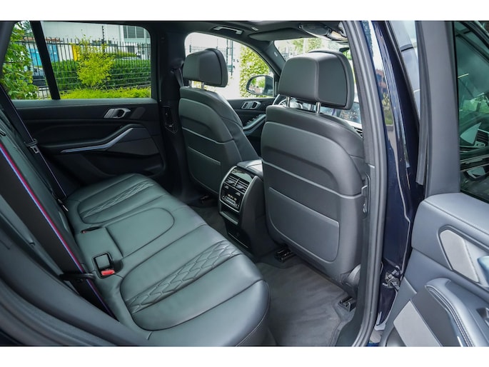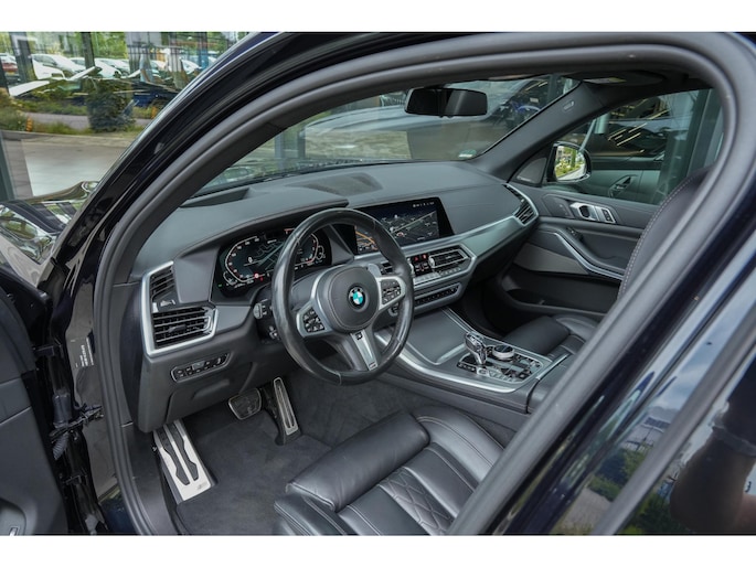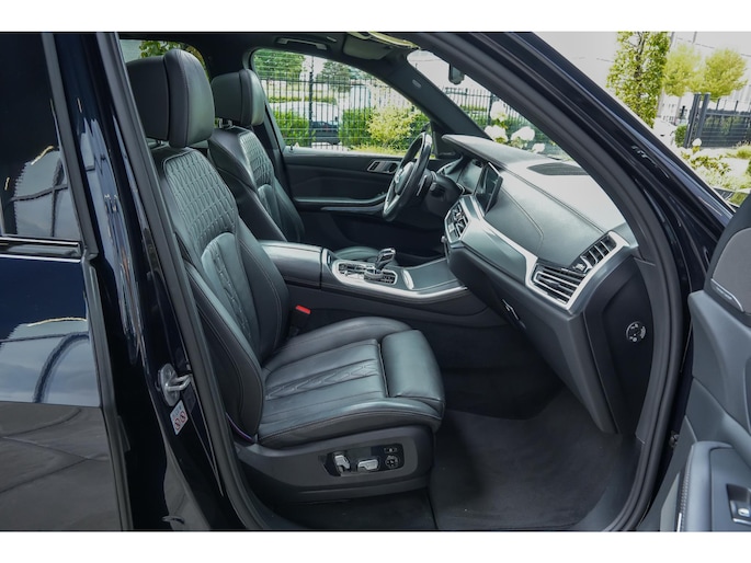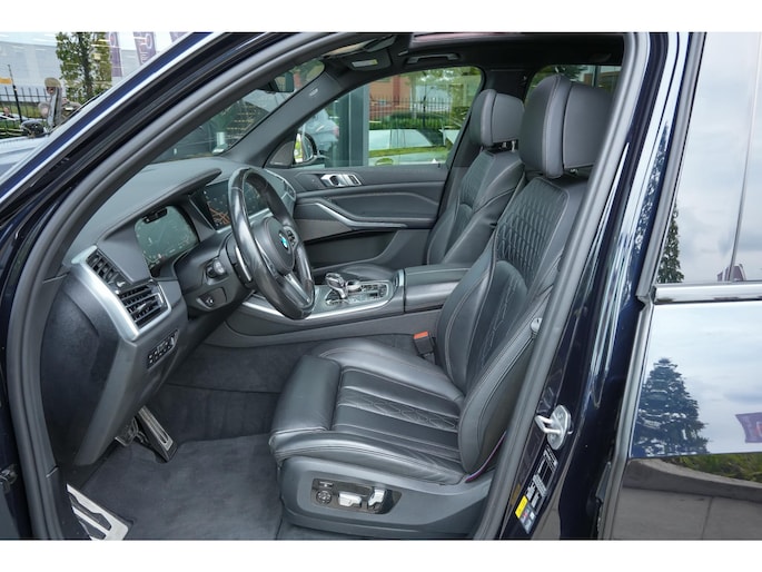 Met zijn imposante aanwezigheid, brede nierengrille, LED-koplampen en hoogglans Shadow Line accenten straalt deze X5 pure klasse uit. Binnenin geniet je van hoogwaardige materialen zoals Vernasca leder, sfeervolle ambient verlichting en een zee van ruimte voor passagiers én bagage.