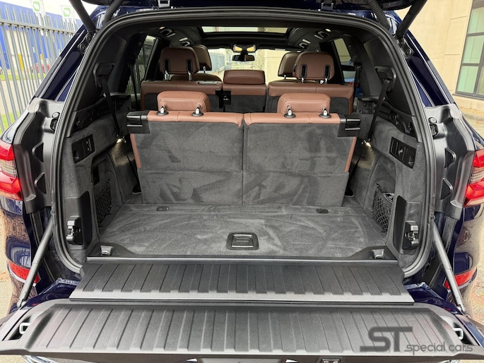 Ook op het gebied van comfort en veiligheid laat deze X5 niets te wensen over. De auto is uitgerust met Driving Assistant Professional, Head-Up Display, Comfort Access, Stoelverwarming vóór en achter, en zelfs massagefuncties voor bestuurder en passagier. Dankzij de 3e zitrij biedt hij ruimte aan het hele gezin.