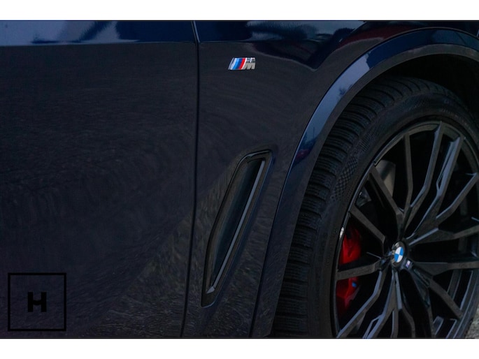 Het Tanzanitblau metallic is afkomstig uit BMW’s Individual-programma en staat bekend om zijn diepe kleur en rijke metallic glans. Vooral in zonlicht komt deze lak volledig tot leven, iets wat tijdens het maken van de foto’s helaas minder zichtbaar was. In combinatie met de zwarte accenten en de imposante 22-inch wielen is dit wat ons betreft één van de meest begeerlijke kleurstellingen voor de X5.