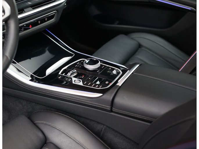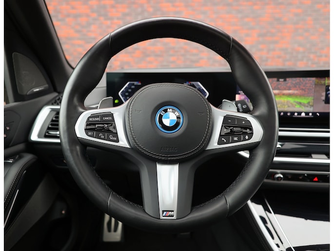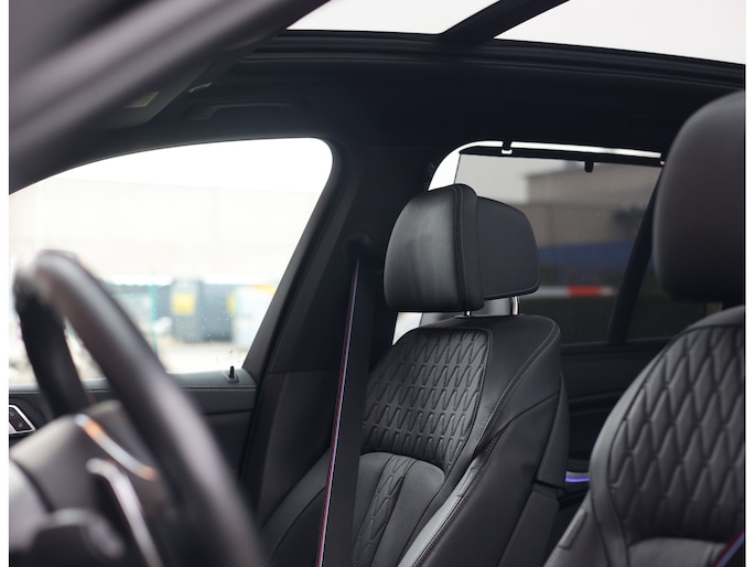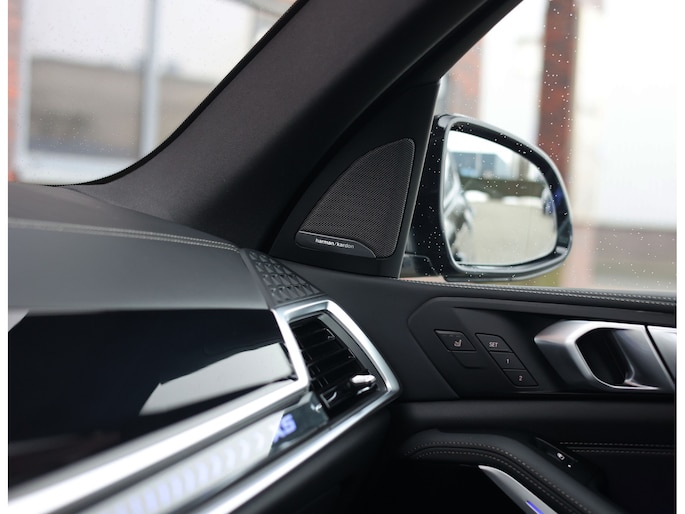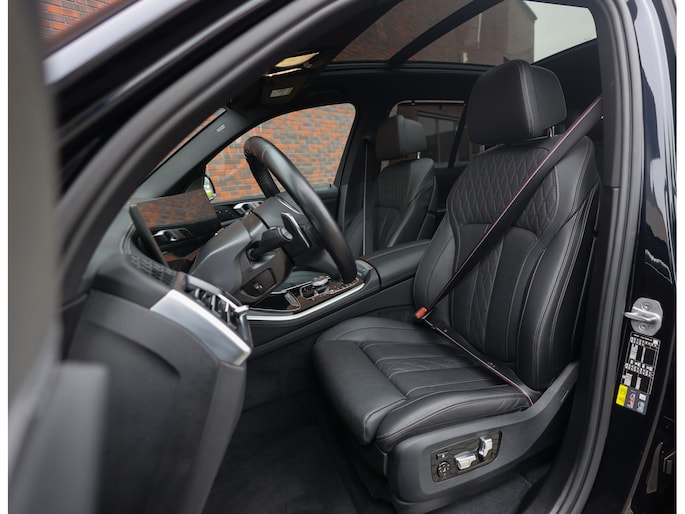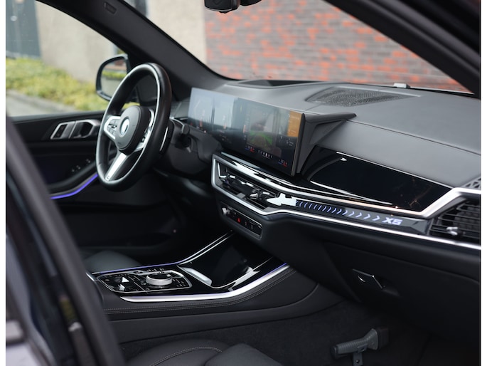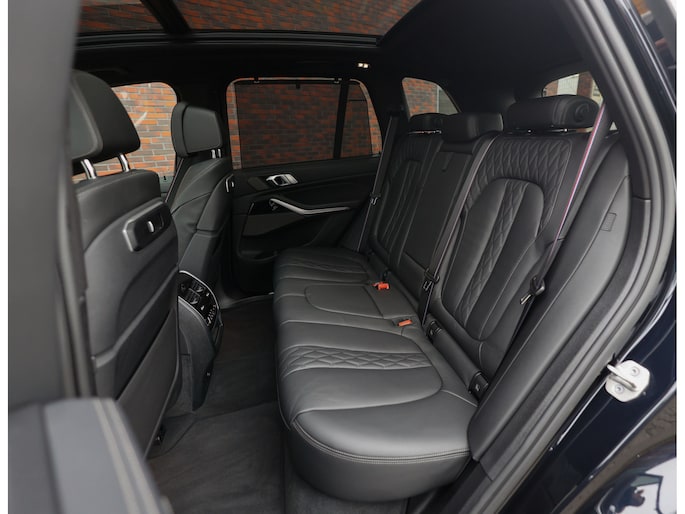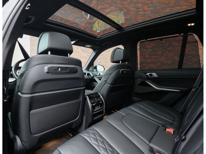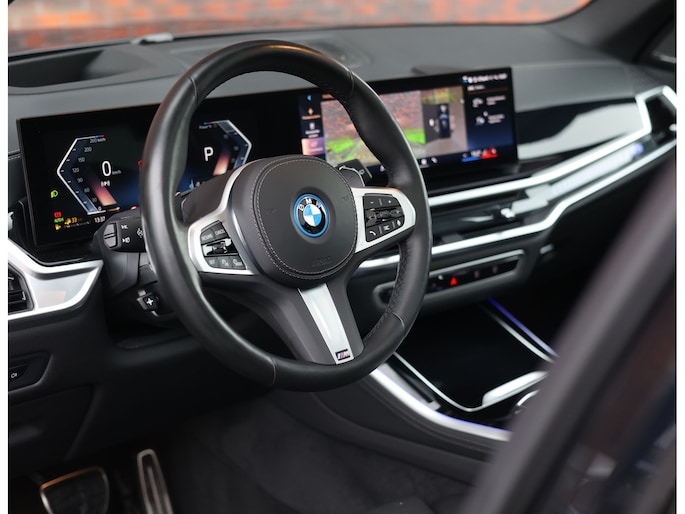 In het interieur spat de exclusiviteit ervan af. De comfortstoelen zijn bekleed met zwart Merinoleder en voorzien van verwarming, ventilatie en massagefuncties. Op het dashboard vinden we eveneens zwart leder en prachtige pianolak interieurlijsten. Qua opties is deze X5 ook helemaal af. Zo geniet u van Harman Kardon audio, een glazen panoramadak en een elektrisch wegklapbare trekhaak.