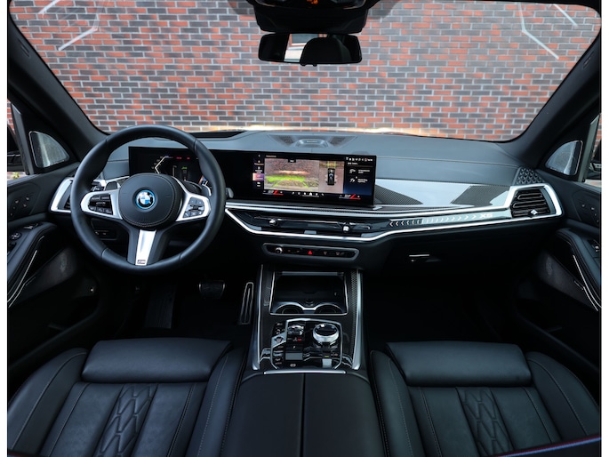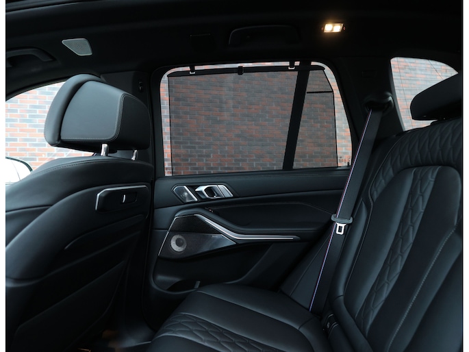 In het interieur vinden we zwart Merino lederen zetels, voorzien van verwarming, ventilatie én massagefuncties. Daarnaast zijn ook het dashboard, middenconsole en deurpanelen in leder uitgevoerd voor een extra exclusief gevoel. Het geheel wordt afgemaakt met sportieve carbon interieurlijsten, Bowers & Wilkins speakers en een donkere binnenhemel. Voor extra ambiance is dit exemplaar uitgerust met het Skylounge panoramadak dat prachtig oplicht in het donker.