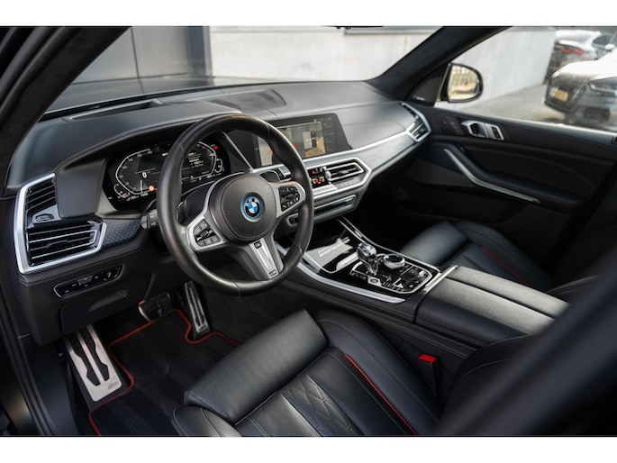 BMW X5 xDrive45e M-Sport Black Vermilion Edition 1e eigenaar, dealer onderhouden, Harman & Kardon Surround System, Massagestoelen voor, Panoramadak met Skylounge, Inklapbare trekhaak, Zwarte Alcantara hemel, Shadow line + koplampen, 22'' velgen, Stoelventilatie voor, 360 camera, Parking Assistant Plus, Zwart Merino lederen comfortseats met rode details, Individual Leder dashboard, Stoelverwarming voor en achter, Stuurverwarming, Head up Display, Keyless Entry & GO, Memory, Rode M Sport remklauwen, Sfeerverlichting, BMW Laserlicht, Driving Assistant Proffesional, ACC (Adaptive Cruise Control), Spiegelpakket, Draadloos oplaadvak, DAB Tuner en nog veel meer...