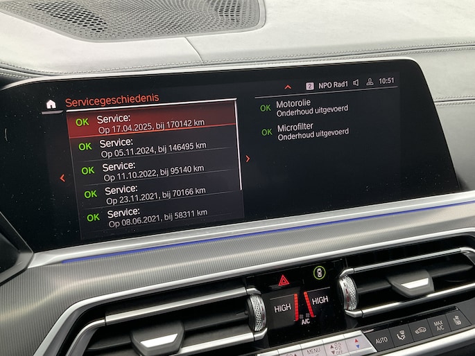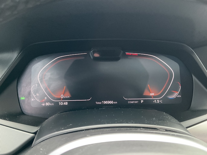 Het digitale dashboard is qua lay-out en zichtbaarheid superslim ingedeeld. Alle functies in één keer in beeld! Comfortabel en veilig achteruitrijden gaat gemakkelijker dan ooit met behulp van de achteruitrijcamera. In het zeldzame geval van een storing weet u nog eerder dan de monteur wat er mankeert. Uw smartphone met remote services geeft direct inzicht. Een goede veiligheidsvoorziening is de spraakbediening en stuurbediening voor belangrijke functies. De auto is natuurlijk voorzien van een navigatiesysteem met harde schijf en het audio-installatiesysteem biedt glasheldere geluidskwaliteit. Radarsensoren aan de achterkant van de auto zorgen voor een achteropkomend verkeer waarschuwing als de afstand tot het verkeer achter te klein wordt. De uitrusting van deze BMW is met automatische airconditioning, regensensor, cruise control, sportstuurwiel, dvd-systeem en automatisch dimmende buitenspiegels behoorlijk compleet.