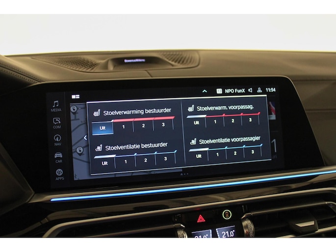 Deze X5 is niet alleen prachtig om te zien maar ook een genot om in te zitten. Dit mede dankzij de mooie M-sport kuipstoelen met memory functie welke zowel masserend, verwarmend als verkoelend zijn.