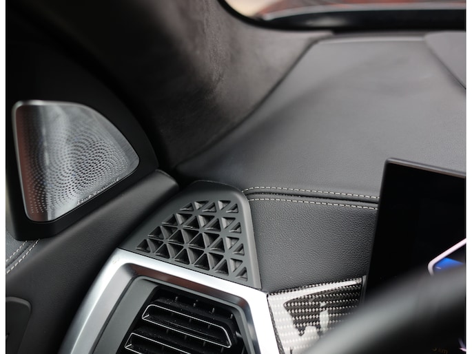 In het interieur vinden we Tartufo Merino leder, zwart Alcantara hemelbekleding en carbon interieurlijsten. De M Multifunctionele stoelen zijn voorzien van verwarming, ventilatie én massagefuncties zodat u altijd van ultiem comfort geniet. Het grote panoramadak brengt licht in het interieur en geeft een extra ruimtelijk gevoel.