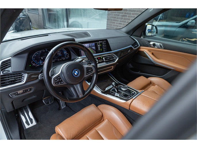 Deze X5 combineert krachtige hybride techniek met topcomfort. Met Vernasca lederen bekleding, verwarmde voorstoelen én achterbank en een groot elektrisch glazen panoramadak zit iedereen eerste klas.