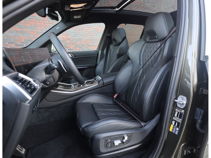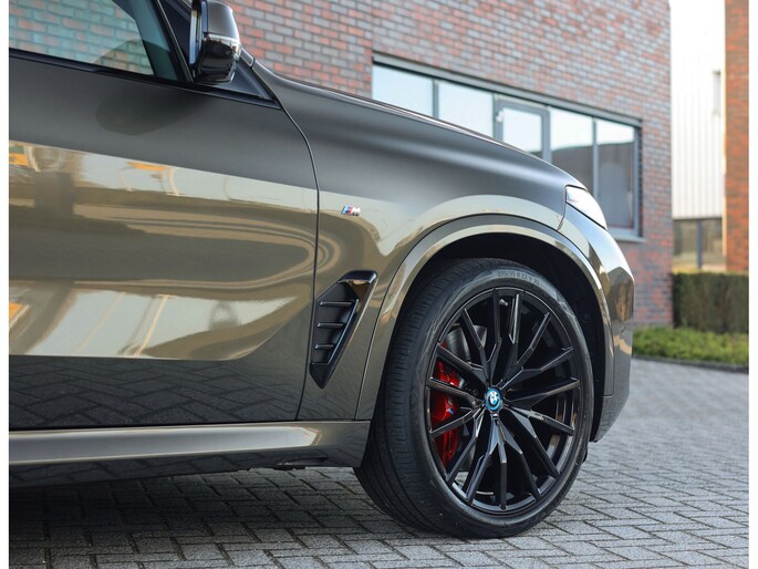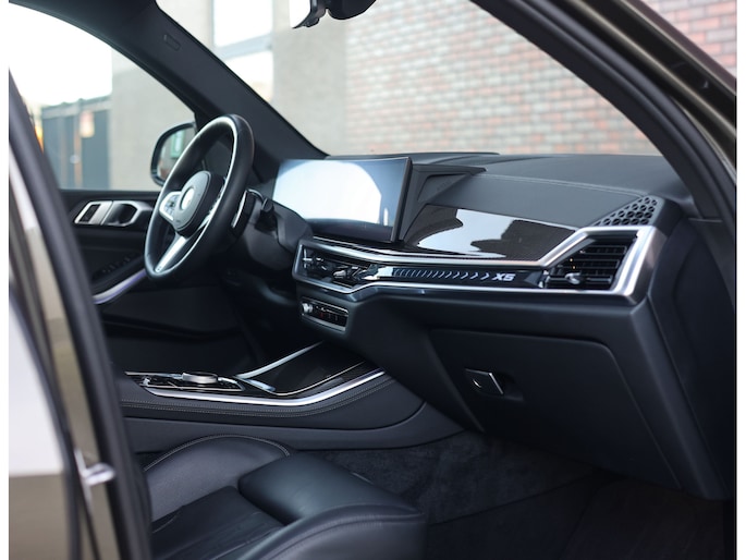 Aan de buitenkant valt de auto op door de 22” velgen met de rode M Sportremmen, gecombineerd met de verlichte Iconic Glow grille en de Shadow Line accenten. Het glazen panorama dak zorgt voor een lichte en ruimtelijke sfeer in het interieur. De trekhaak maakt de X5 daarnaast ook praktisch in het dagelijks gebruik.