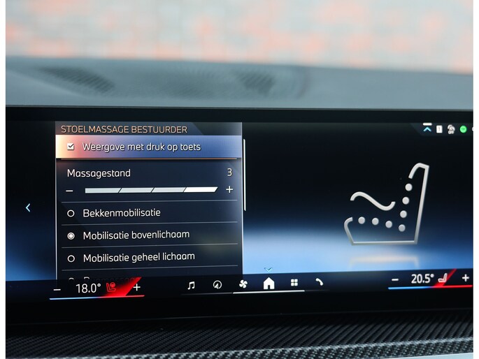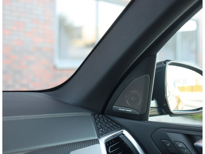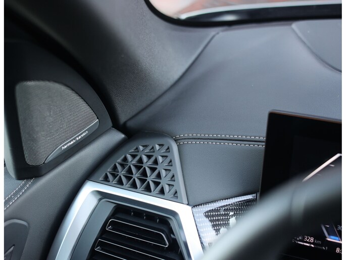 Binnenin is het comfortabel en sportief tegelijk. De multifunctionele M stoelen bieden verwarming, ventilatie en een massagefunctie, aangevuld met stoelverwarming achter. Zwart Merino leder, Carbon Fibre interieurlijsten en de zwarte hemelbekleding maken het geheel af, terwijl het Harman/Kardon audiosysteem en sfeerverlichting zorgen voor een fijne sfeer tijdens elke rit.
