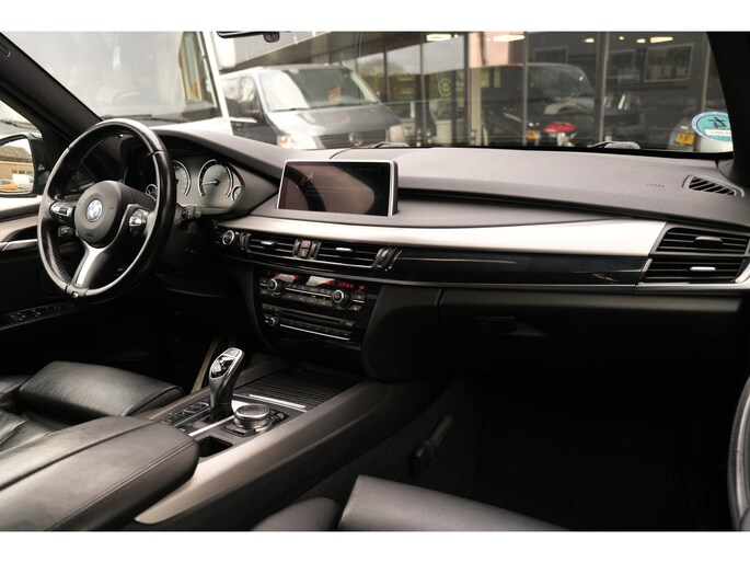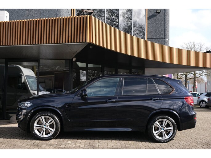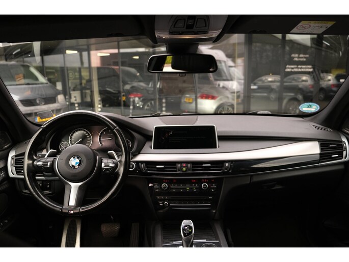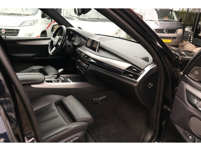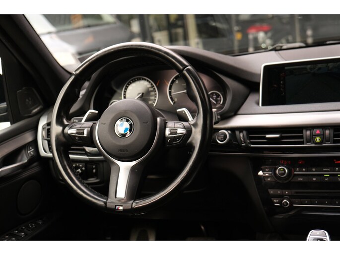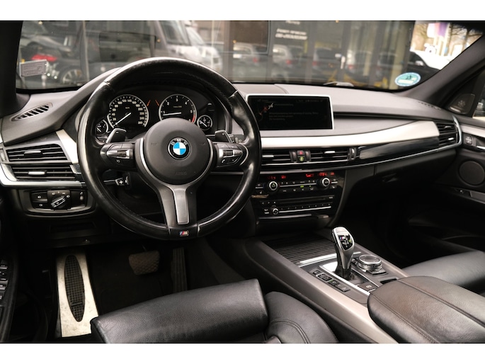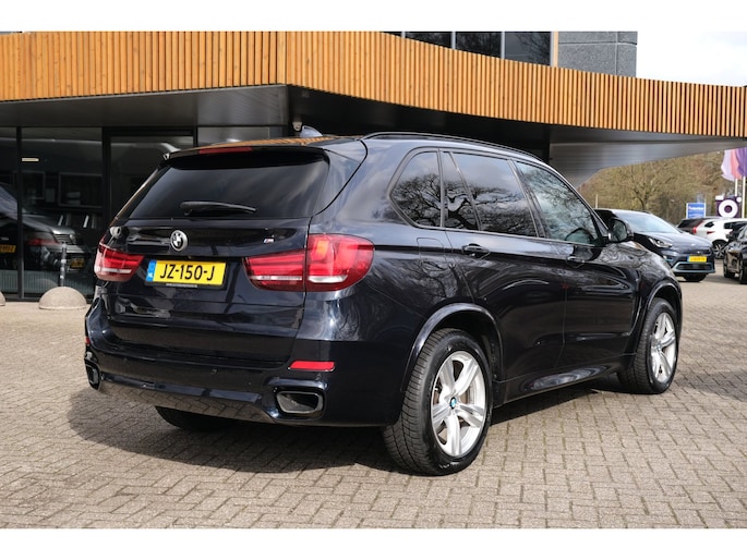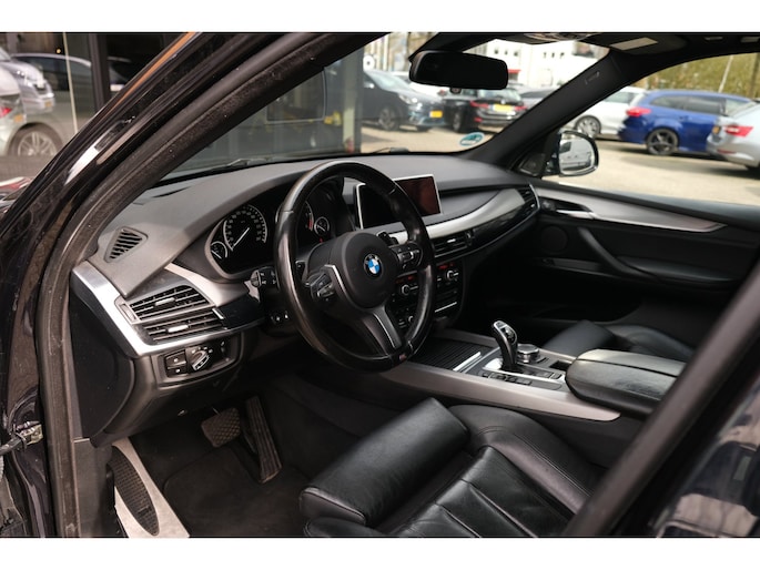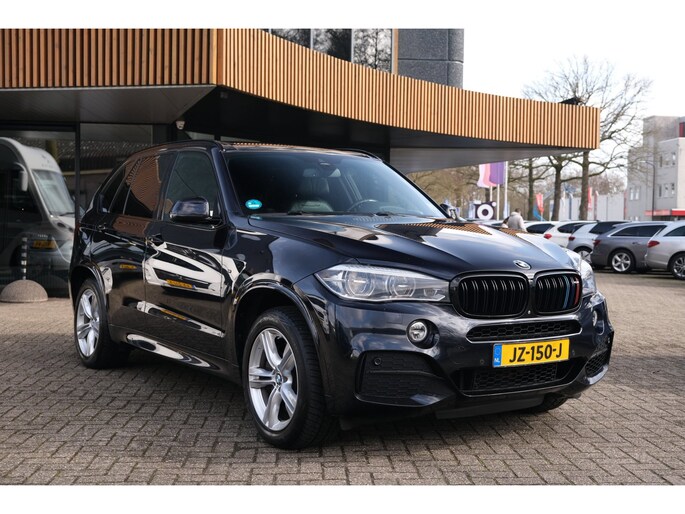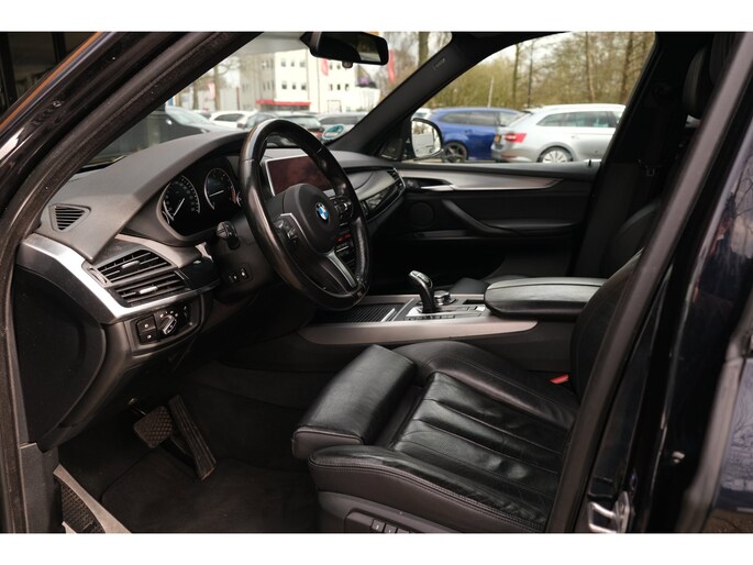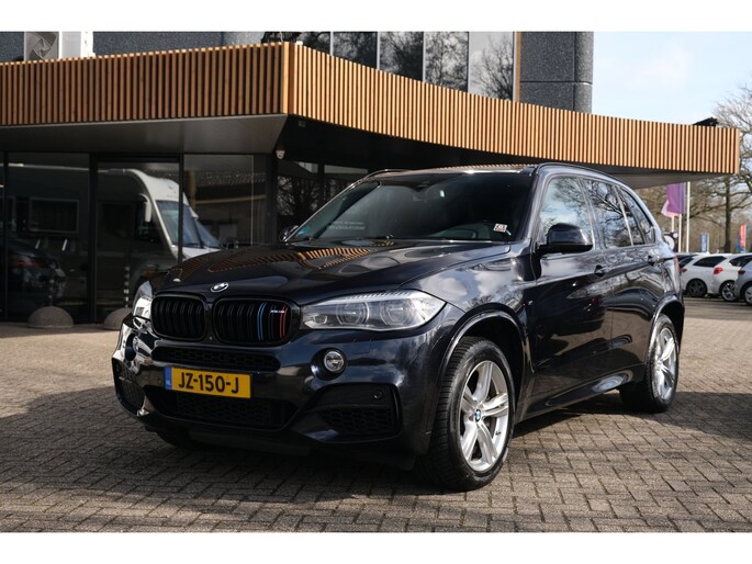 Nette, goed onderhouden en rijk uitgeruste BMW X5 M50d uit 2016. Deze sportieve diesel SUV is o.a. voorzien van: HiFi System Harman Kardon, elektrisch glazen panorama-dak, keyless, stuur verwarmd, trekhaak elektrisch uitklapbaar, stoelverwarming, achteruitrijcamera en M-pakket. Uitgevoerd in Carbonschwarz metallic met Leder 'Dakota' Schwarz comfortinterieur.