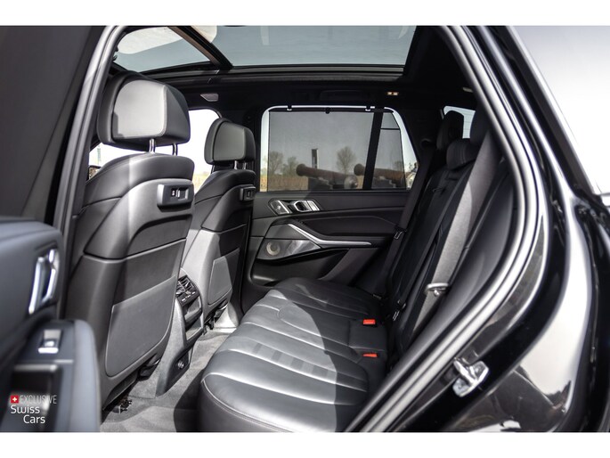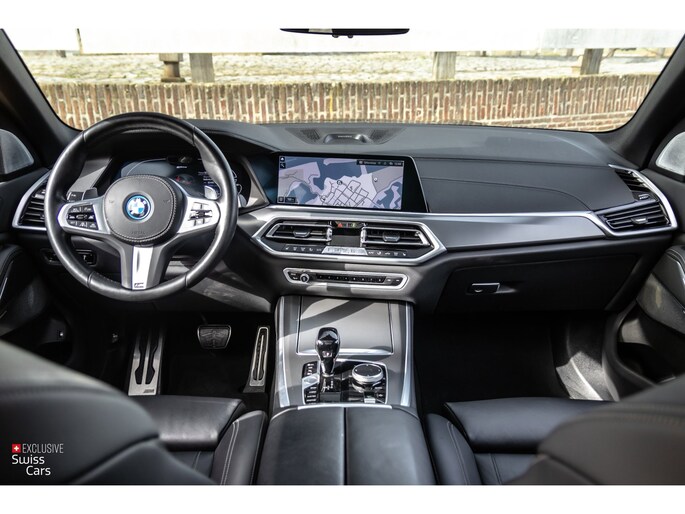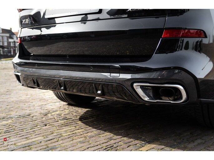 Deze X5 is uitgevoerd in het stijlvolle Sapphire Black Metallic, gecombineerd met een zwart Vernasca lederen interieur. De auto beschikt over het M Sportpakket, inclusief M aerodynamica, M sportremmen, 20 inch M lichtmetalen velgen en een M lederen sportstuur, wat zorgt voor een sportieve en krachtige uitstraling.