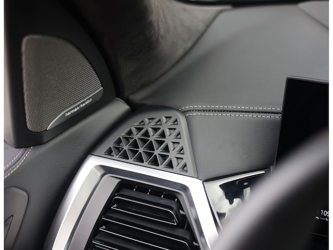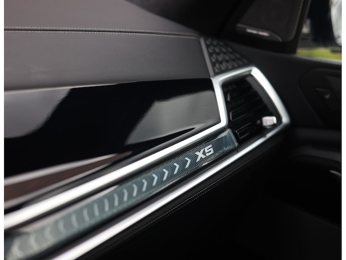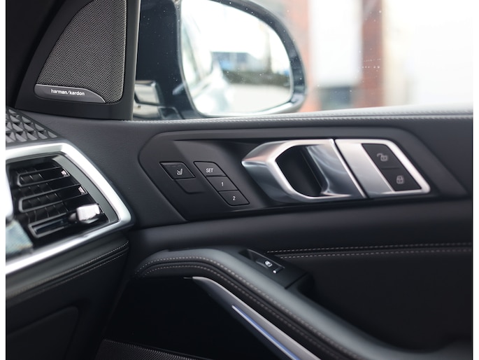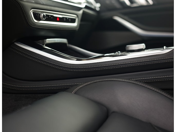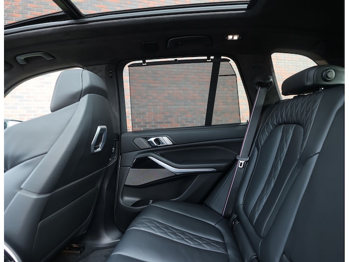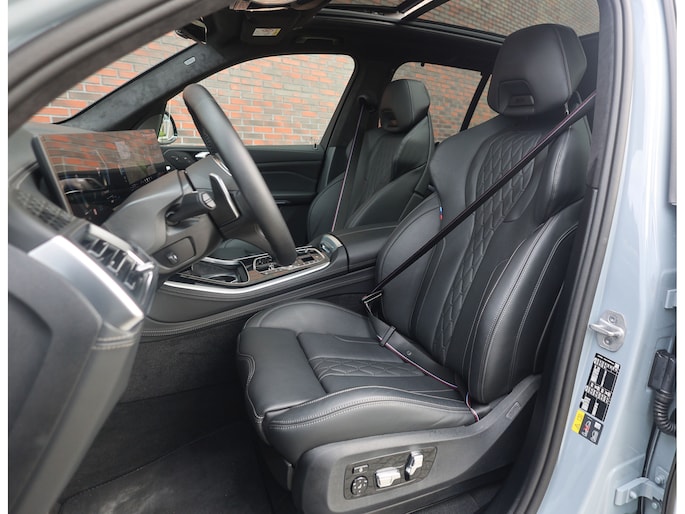 Het interieur is volledig bekleed met BMW Individual Merino-leder in zwart. Zacht, hoogwaardig en perfect afgewerkt. M Multifunctionele sportstoelen met geheugen, stoel- en stuurverwarming en een panoramadak zorgen dat elke rit ontspannen verloopt, terwijl het Harman/Kardon audiosysteem en de sfeerverlichting het geheel een luxueuze sfeer geven.