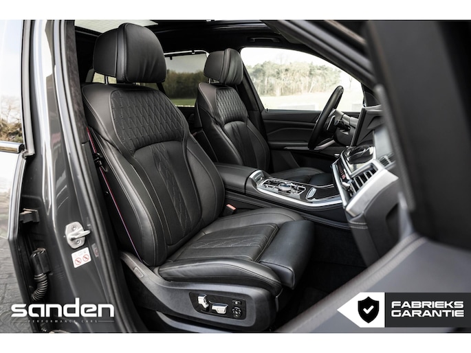 Het interieur is afgewerkt op hoog niveau met BMW IndividualMerino lederen bekleding in combinatie met een Alcantara hemel, wat zorgt voor een exclusieve ambiance. Het Sky Lounge panoramadak creëert een unieke lichtbeleving in het interieur. Daarnaast zorgen massagefuncties, het premium Harman/Kardon audiosysteem en het 360º camerasysteem voor maximaal comfort en gebruiksgemak.