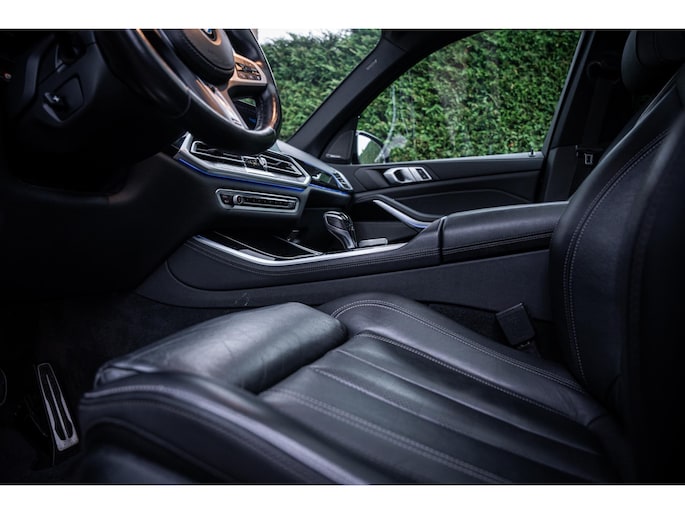 Al meer dan honderd jaar is het bewijs geleverd: BMW maakt rijden geweldig. Altijd al een voorkeur voor een lederen interieur gehad? Deze BMW X5 heeft het! Neem plaats op de comfortabele comfortstoelen. Dankzij de elektrische bediening en het geheugen is het eenvoudig om hierin de beste zitpositie te vinden. Zon en frisse lucht krijgen vrij spel dankzij het elektrisch bediende glazen panoramadak. De achterklep opent automatisch met een druk op de knop. Handig als u met volle handen staat. Wind, sneeuw, hagel, regen... allemaal vergeten als u het verwarmd stuurwiel in handen heeft. Tot de voorzieningen van deze auto behoren 22 inch lichtmetalen velgen, LED koplampen, sportonderstel, extra getint glas, in delen neerklapbare achterbank en LED-achterlichten.