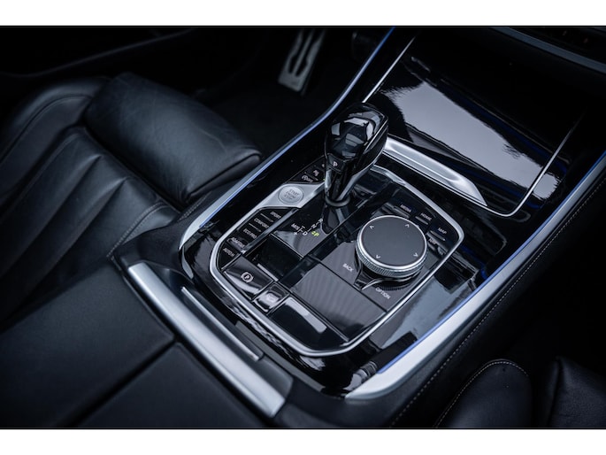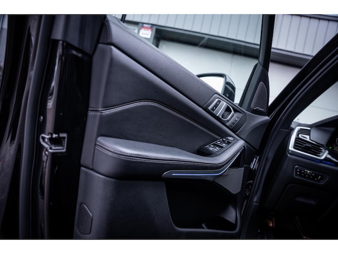 SAPHIRSCHWARZ METALLIC kleur wat ook is afgewerkte met zwarte accenten en 22 inch M-performance wielen. Als we de deuren openslaan zien we het dikke Vernasca lederen interieur, heel gaaf!