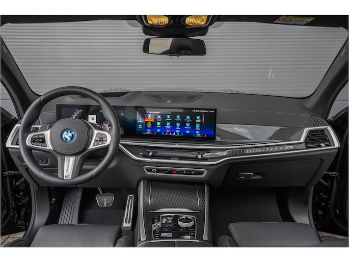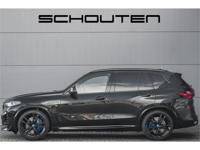 Autobedrijf Schouten biedt u deze zeer vol uitgevoerde BMW X5 xDrive50e M-Sport Pro aan, met nog maar 18.030 KM. Het exterieur is uitgevoerd in de diepe metallic kleur: 'Saphirschwarz', gecombineerd met een black pack en sportieve lip kit rondom. Dit is gecombineerd met een zwart merino lederen interieur met M-Sportstoelen en carbon. Verder beschikt de BMW X5 xDrive50e M-Sport Pro over een flinke lijst met fabrieksopties. Hieronder ziet u een greep uit deze optielijst:
