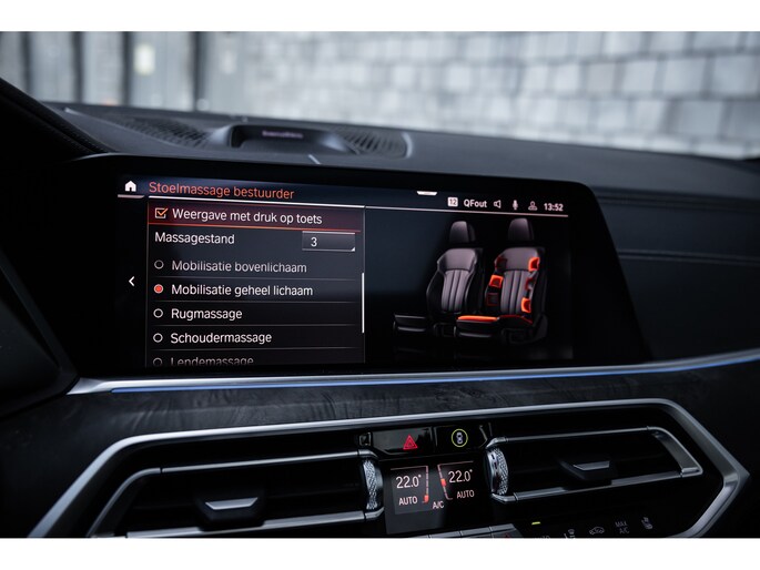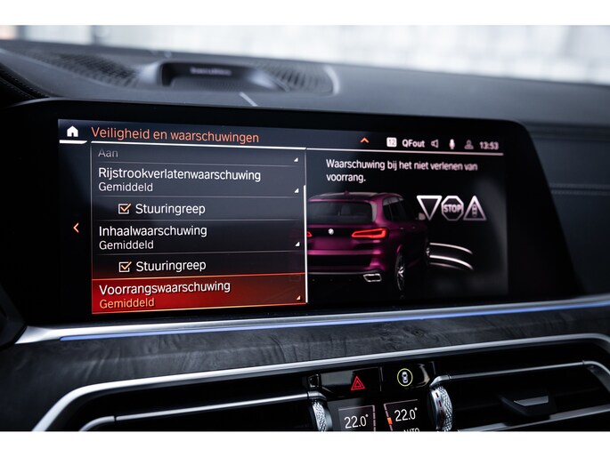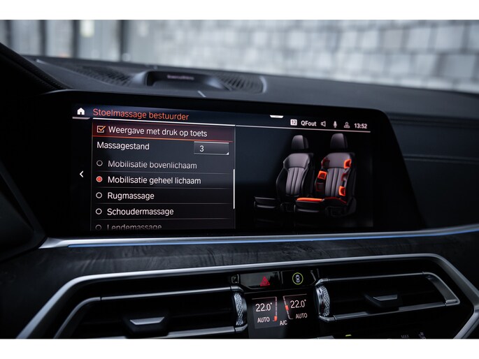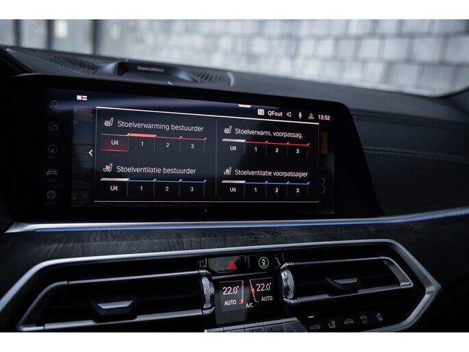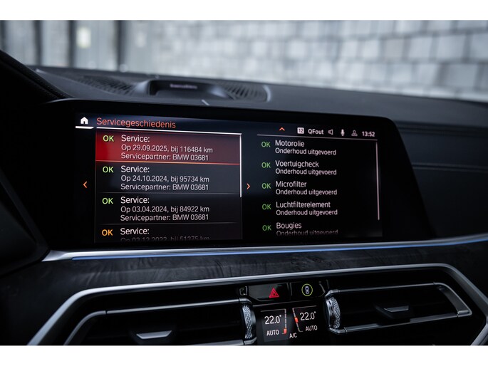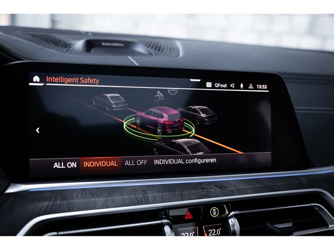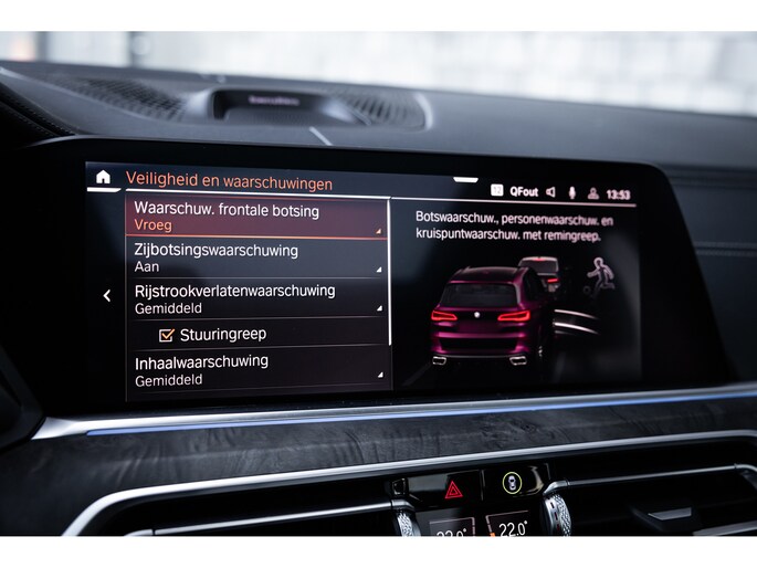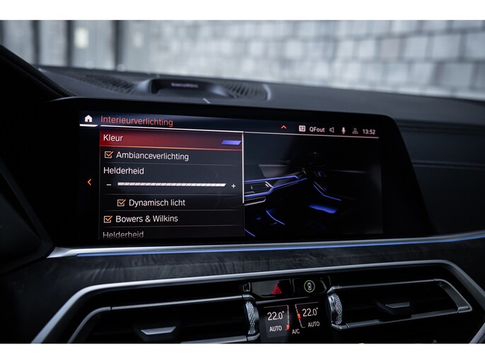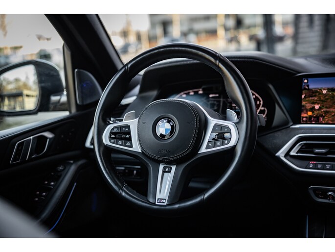 Qua luxe is deze X5 extreem samengesteld. Belangrijke opties zijn het waanzinnige Bowers & Wilkins audiosysteem. Het biedt niet alleen de meest bijzondere geluidservaring, het is ook optisch heel fraai. Verder uiteraard de Comfortzetels met maximale elektrische verstelling, memory, massagefunctie, stoelverwarming en stoelventilatie. Uiteraard is ook het stuurwiel verwarmd. De ambient sfeerverlichting geeft uitstraling en is naar wens instelbaar qua kleur en helderheid. De bekerhouders zijn te verwarmen en te koelen. Uiteraard beschikt de X5 over alle rijassistenten met onder meer adaptieve cruise control, dodehoekdetectie, uitstap assistent, verkeersbordherkenning, head-up display en 360° camerasysteem met automatisch inparkeren. Het multimediasysteem voorziet in eigen navigatie, maar beschikt uiteraard ook over Apple CarPlay en Android Auto. Nog één optie die we niet onbelicht laten is BMW Laserlicht. Een ongekende lichtopbrengst met dynamische lichtbundel en zeer geavanceerde grootlicht assistent.