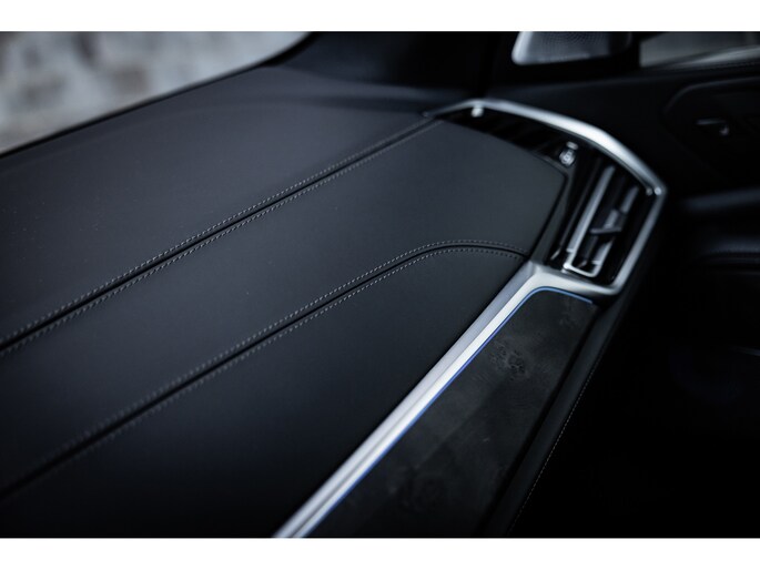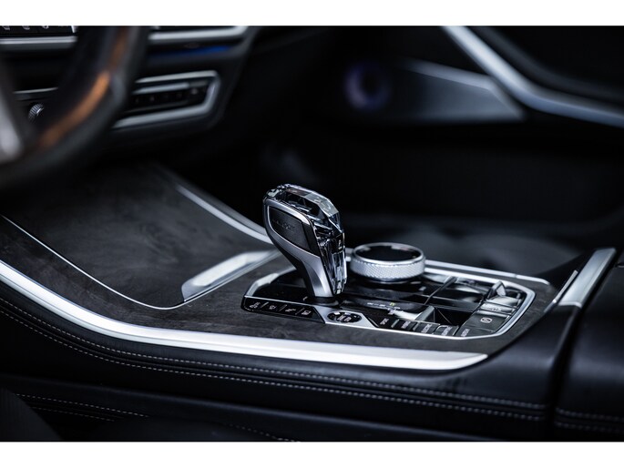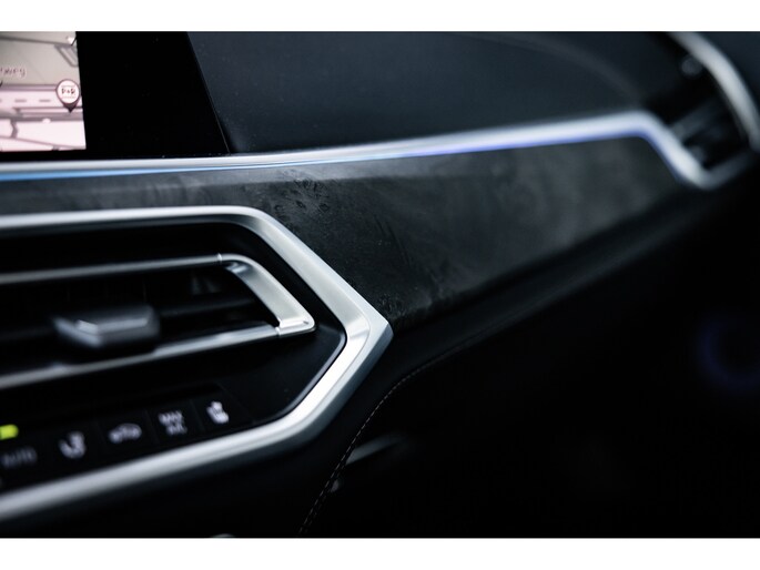 Binnenin de X5 gaat het verder. Dit exemplaar is extreem luxe uitgevoerd met vele bijzondere opties die het gevoel van luxe en exclusiviteit absoluut verhogen. Beginnend met de uitstraling. Het Individual interieur voorziet in het maximale qua leerafwerking. De middenconsole, deurkaarten, het centrale deel van het stuurwiel en het dashboard zijn allemaal bekleed in zwart leder met contrasterende witte stiksels. Verder treffen we de bijzondere eledhouten sierlijsten aan. De donkere kleuren van populierhout komen prachtig samen met het luxe interieur. De glasoptiek elementen zijn een gewilde optie die simpelweg niet mag ontbreken. Hemelbekleding is ook zwart en het panorama dak is voorzien van Sky Lounge. Oftwel, de befaamde verlichte hemel.