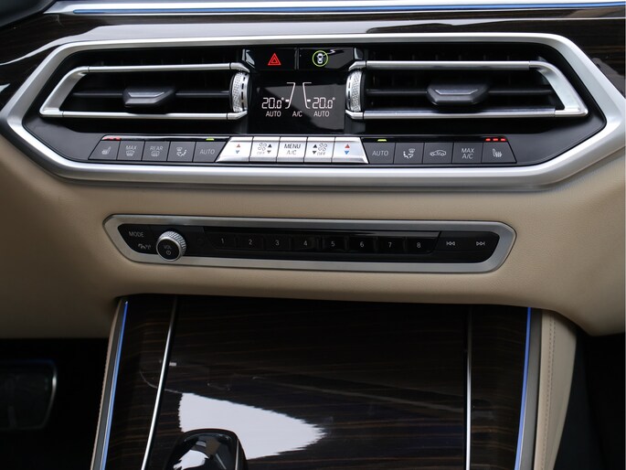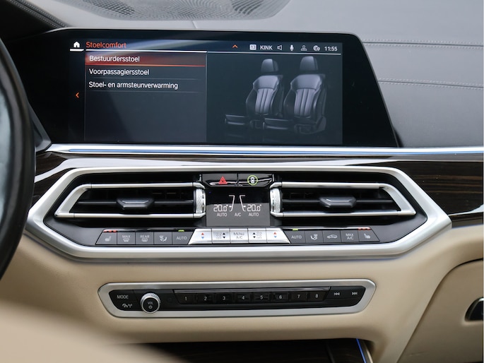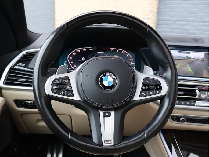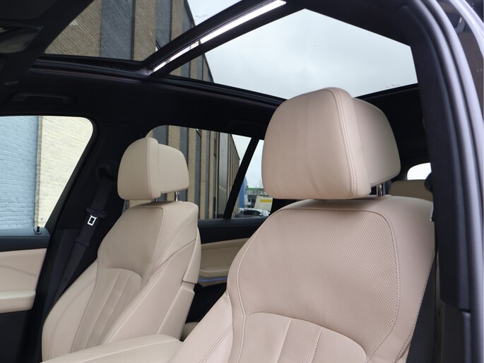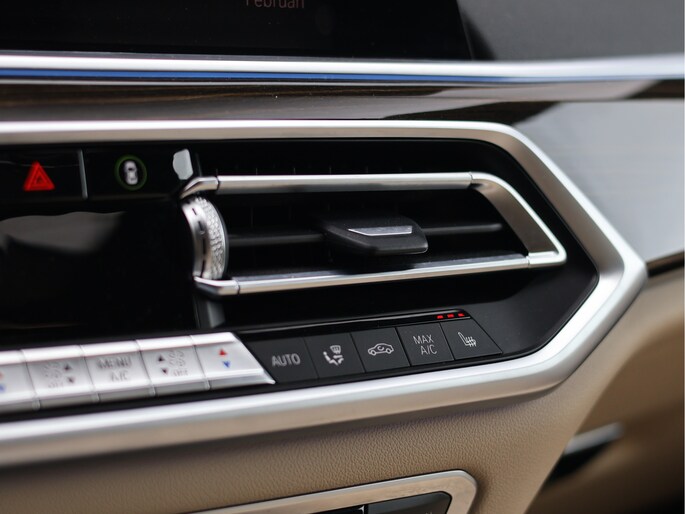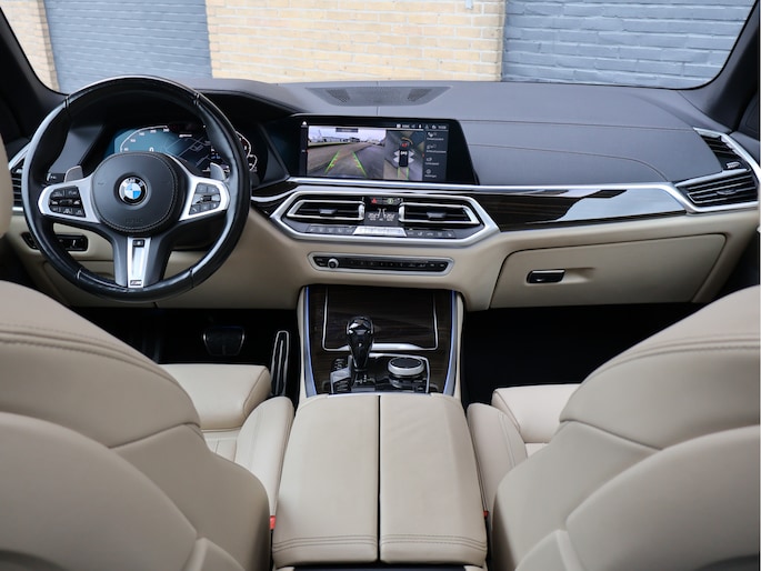 Stap in en u wordt ontvangen door een interieur dat luxe en sportiviteit naadloos combineert. Het Vernasca leder in Canberrabeige vormt een prachtig contrast met het donkere exterieur. De elektrisch verstelbare comfortstoelen omarmen u moeiteloos, het M lederen stuurwiel ligt perfect in de hand en via het Head-Up Display blijft uw blik op de weg terwijl de belangrijkste informatie subtiel in beeld verschijnt. Het panoramaglasdak laat het interieur baden in daglicht en zorgt voor een ruimtelijk gevoel dat perfect past bij het karakter van de X5.