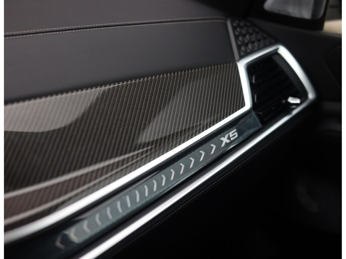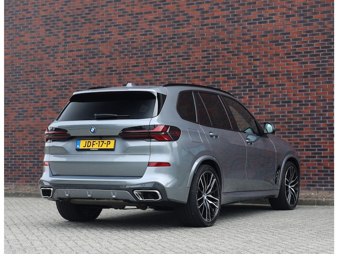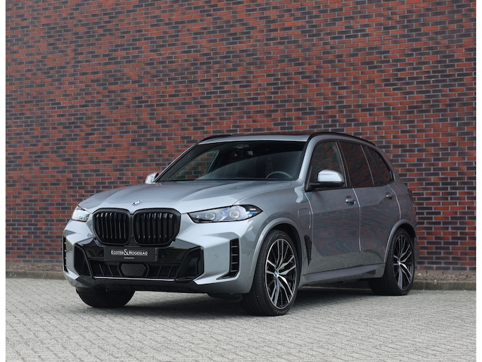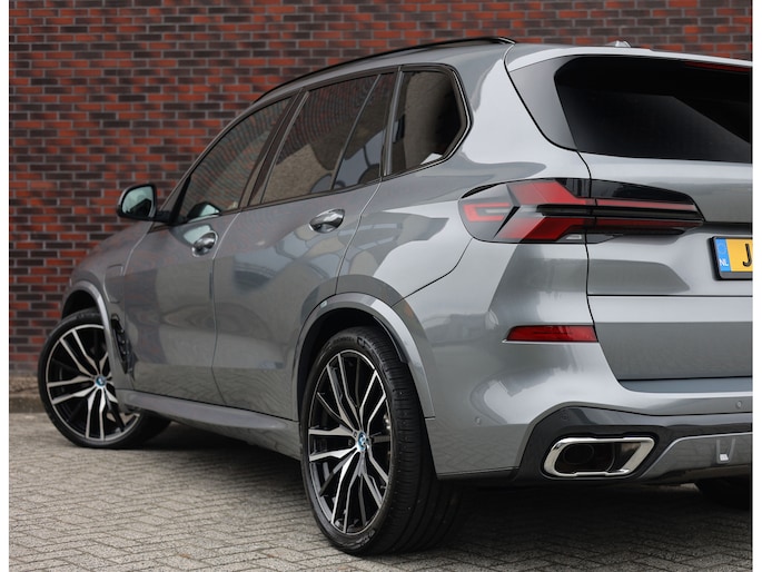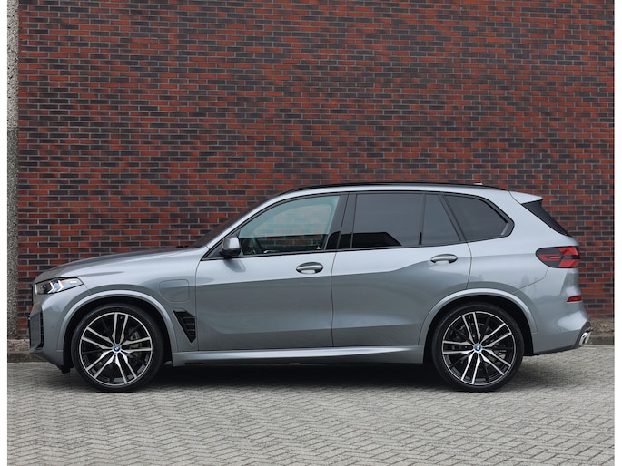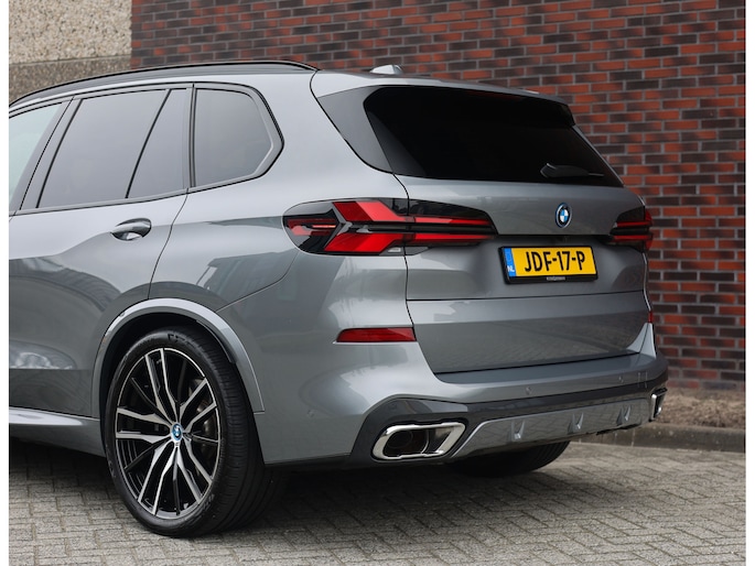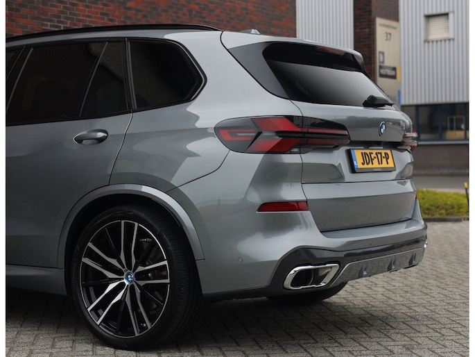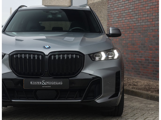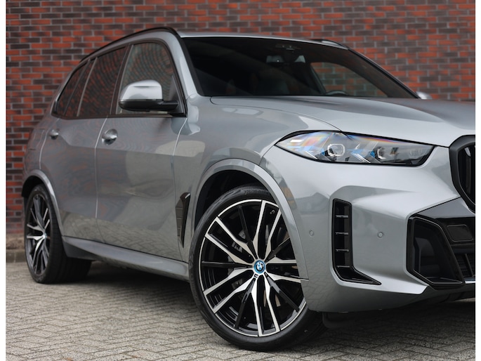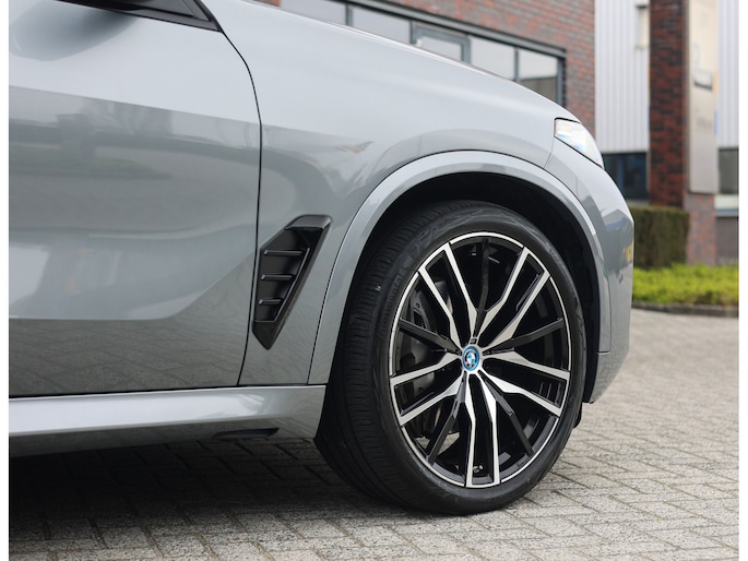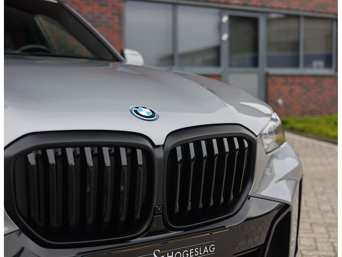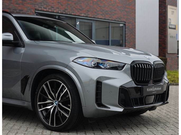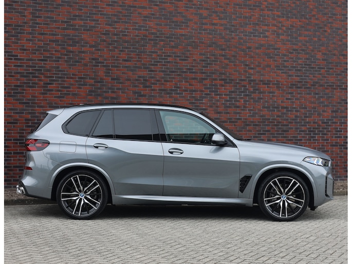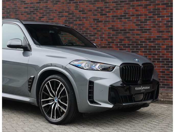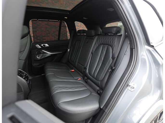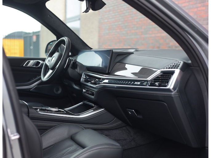 Deze BMW X5 presenteert zich hier in een zeldzaam verfijnde samenstelling, uitgevoerd in het Skyscraper Grey metallic met de indrukwekkende 22 inch M velgen die het M Sport karakter van de auto volledig benadrukken. Dankzij het M Sportpakket krijgt het exterieur een krachtige en dynamische uitstraling, wat we ook terugzien aan de voorkant van de auto door de Iconic Glow nierengrille, die de auto zowel overdag als in het donker een moderne look geeft.