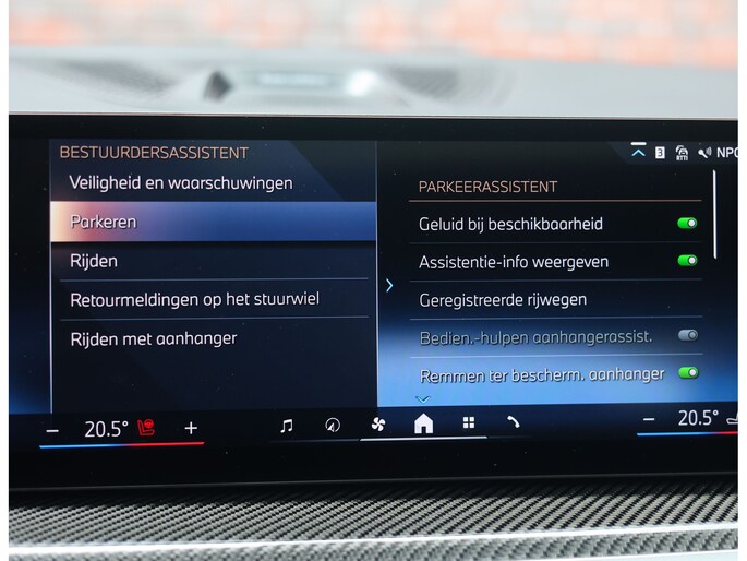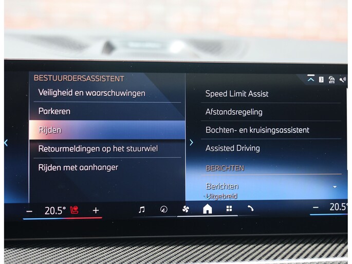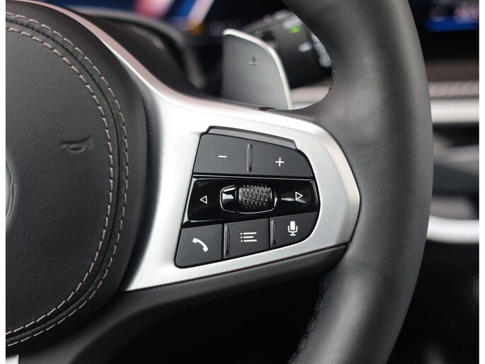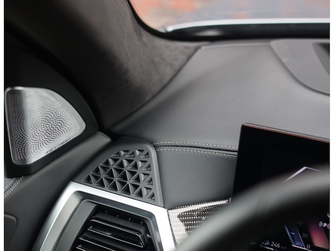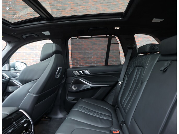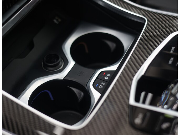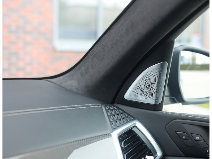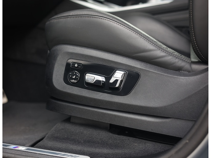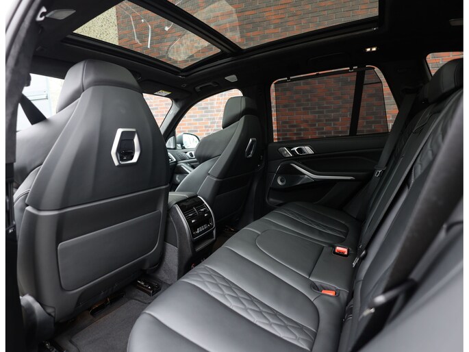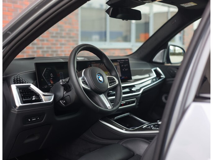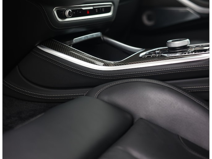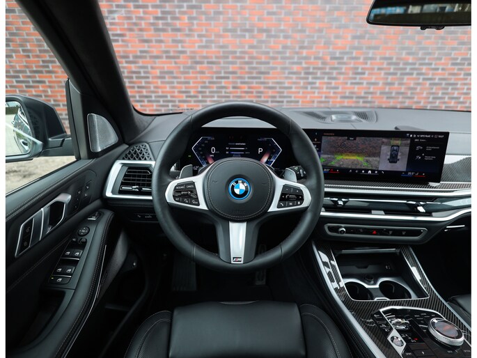 Binnen wacht een interieur dat de sportiviteit van BMW volledig uitstraalt. De Merino lederen bekleding in zwart vormt een luxe basis die wordt versterkt door de Carbon Fibre interieurafwerking en de schitterende Crafted Clarity glasapplicaties. De M stoelen voegen daar een indrukwekkend niveau van comfort aan toe: niet alleen verwarmend, maar ook voorzien van ventilatie en massagefunctie, terwijl ook de passagiers achterin genieten van verwarmde stoelen. Het geheel wordt boven u stijlvol afgerond door de Sky Lounge, waarbij subtiel verlichte lichtbanen in het panoramadak een rustgevende, bijna zwevende sfeer in het interieur creëren.