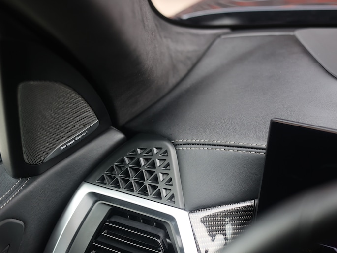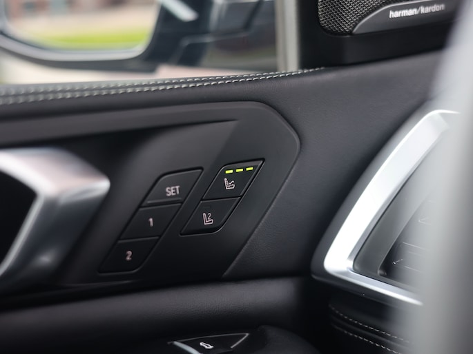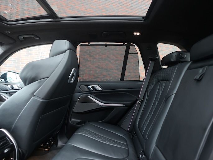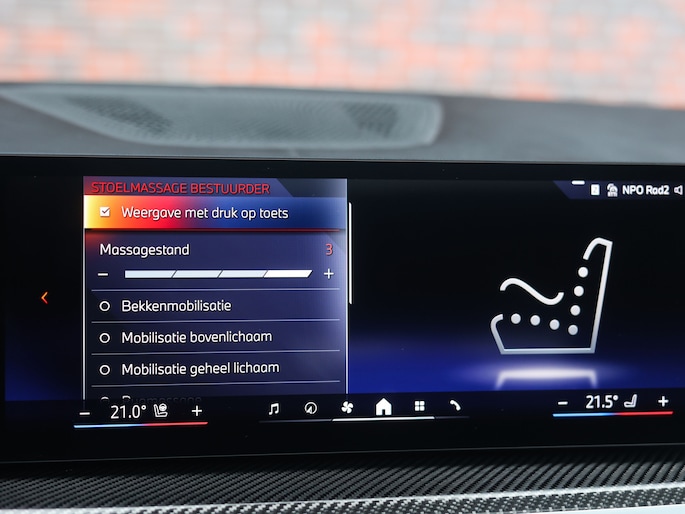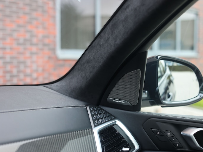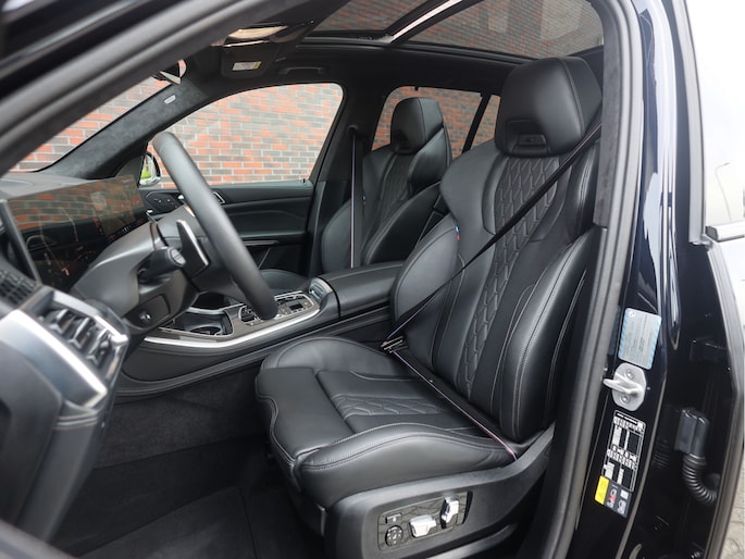Ook binnen kunt u de topklasse van BMW verwachten vol luxe en aandacht voor detail. De zwarte Merino lederen bekleding straalt, samen met de carbon interieurafwerking, klasse en sportiviteit uit. De multifunctionele M stoelen bieden verwarming, ventilatie en massage, terwijl ook de achter passagiers genieten van stoelverwarming. Het glazen panoramadak zorgt met sfeerverlichting voor een licht en ruim gevoel. Door het Harman Kardon audiosysteem en de Crafted Clarity bedieningselementen geniet u van helder, krachtig geluid en fraai afgewerkte details, wat het interieur extra luxe en exclusief maakt.