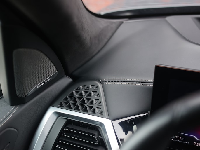Binnenin wordt u verwend met een interieur van hoog niveau. De comfortstoelen zijn bekleed met luxe leder, voorzien van geheugen, verwarming, ventilatie en zelfs massage voor bestuurder en voorpassagier. Ook achterin is stoelverwarming aanwezig. Het met leder beklede dashboard, de Crafted Clarity glasapplicaties en de pianolak zwarte interieurlijsten zorgen voor een exclusieve sfeer. De Alcantara hemelbekleding en sfeerverlichting maken iedere rit tot een prettige beleving, overdag én ’s avonds. Het panoramisch glazen dak laat het interieur extra ruim aanvoelen.