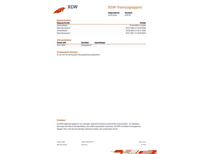 | Wegenbelasting/3mnd | € 495 - € 541 |