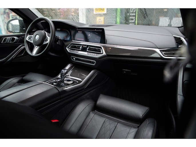 Schitterende BMW X6 xDrive40i M Sport geheel X6M uitgevoerd! Unieke auto! In Manhattan metallic i.c.m. Individual lederen bekleding in zwart. Zeer fraaie combinatie. Veel carbon details en voorzien van de 22 inch sterspaak (styling 818M) X6M licht metalen velgen. Volledig BMW dealer onderhouden. Voorzien van veel fabrieksopties zoals: