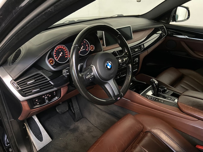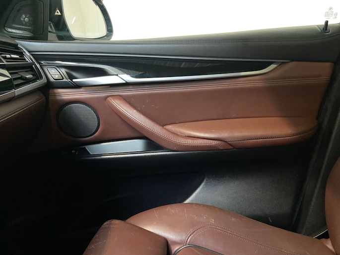 Hij zorgt voor een ontspannen rijervaring, deze BMW X6. Het is een auto uit 2015. De krachtige dieselmotor van deze auto is gekoppeld aan een automatische transmissie. Dit is een auto in het wat hogere segment; dat merkt u bijvoorbeeld aan de luchtvering. Houdt u van een luxe uitstraling? Dan is het lederen interieur een heel aantrekkelijke extra! Dankzij de elektrische stoelbediening is het gemakkelijk om de optimale zitpositie te vinden. Fun en functie wordt samengebracht in het elektrisch bedienbare glazen panoramadak. De elektrische achterklep opent met een druk op de knop, zodat u gemakkelijk toegang heeft tot de bagageruimte. In deze BMW profiteert u onder andere ook van: 19 inch lichtmetalen velgen, LED koplampen, adaptief dempingsysteem, in delen neerklapbare achterbank en snelheidsafhankelijke stuurbekrachtiging.