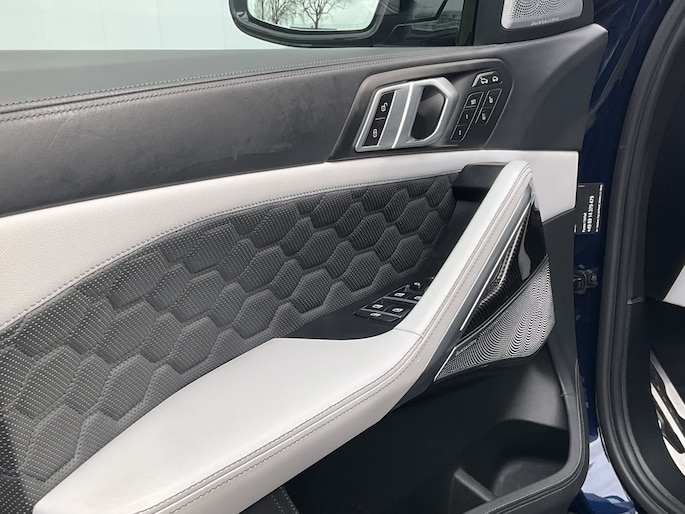 De nieuwste veiligheidssystemen komen in deze BMW X6 samen. Onderweg worden ritfuncties naar keuze op de voorruit geprojecteerd met de head-up display. In het instrumentarium kunt u bovendien de verkeersborden zien die u onderweg tegenkomt. Zo helpt deze BMW u om veiliger te rijden. Het Lane-keeping systeem doet precies wat nodig is: waarschuwen en corrigeren bij onbedoelde overschrijding van de rijstrooklijnen. De auto is ook uitgerust met dodehoekdetectie, forward collision warning system, hill hold functie, brake assist, vermoeidheidsherkenning en bandenspanningcontrolesysteem.