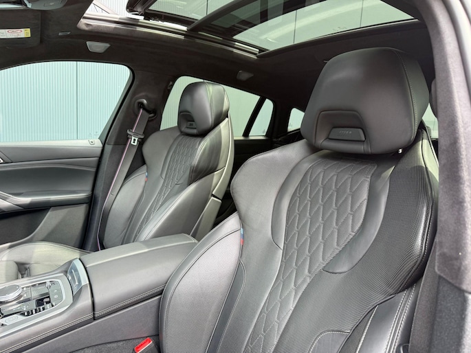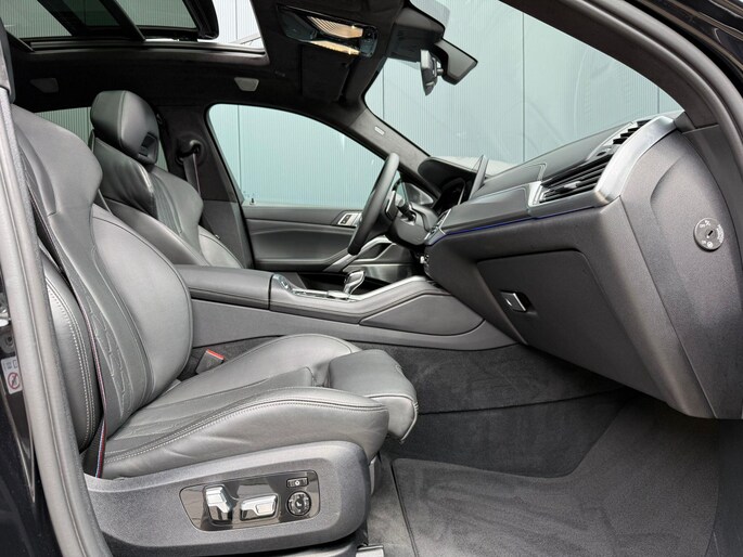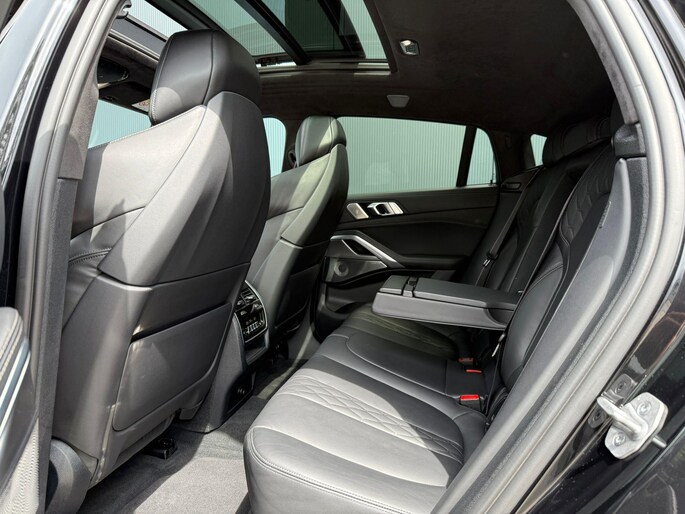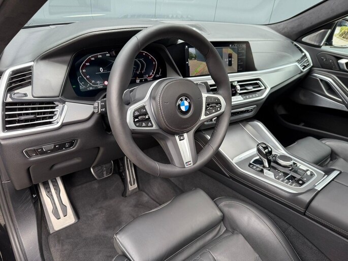 U merkt het aan de look and feel van deze auto: dit is kwaliteit. De BMW X6 is ontworpen volgens de Duitse opvattingen van kwaliteit en degelijkheid, maar biedt tegelijk een hoge mate van comfort en uitstekende rijkwaliteiten. Een zescilinder dieselmotor en een automatische transmissie zorgen samen voor een snelle en comfortabele rijervaring. Een lederen interieur is natuurlijk altijd een heerlijke plus. Maar wie van praktisch gemak houdt, wordt ook nog eens extra blij van het elektrisch bediende glazen panorama dak en de elektrisch bedienbare achterklep. Ondanks koele temperaturen buiten, blijft u binnen warm met de stoelverwarming met massagefunctie en verwarmbare stuur en achterbank. U past de stoelen moeiteloos aan, ze zijn elektrisch in te stellen en hebben bovendien een geheugen. Elke rit is veilig en comfortabel dankzij de relaxte luchtvering en de comfortstoelen. Tot de uitrusting behoren ook 22 inch lichtmetalen velgen, LED-koplampen, adaptief dempingsysteem, geluidsisolerende ramen, in delen neerklapbare achterbank en LED-achterlichten.