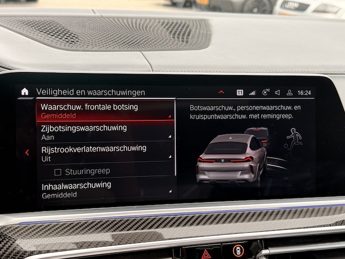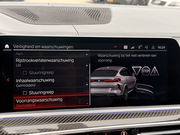 Zoals u mag verwachten van deze BMW X6 is hij uitgerust met een reeks aan actieve veiligheidssystemen. In het instrumentarium ziet u tijdens de rit ook de belangrijkste verkeersborden aangegeven, die de auto automatisch voor u leest. Indien u onbedoeld de rijstrook lijkt te verlaten, reageert het Lane-keeping systeem meteen en corrigeert. Deze auto heeft actieve dodehoekdetectie. Dit veiligheidssysteem helpt u om aanrijdingen te voorkomen. U bent mede dankzij head-up display, forward collision warning system, hill hold functie, brake assist, vermoeidheidsherkenning en bandenspanningcontrolesysteem steeds veilig onderweg.