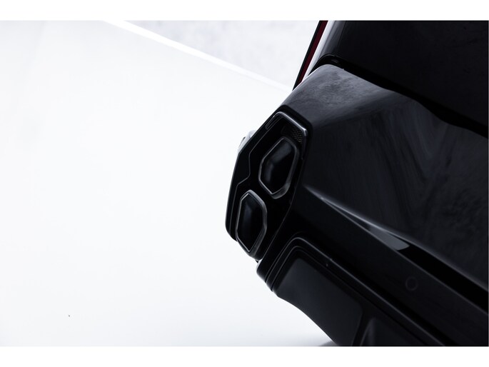 Saffierzwart met rondom alle details in zwart optiek én met de fraaie 23" Inch sterspaak 923M Design wielen; wat een samenstelling!