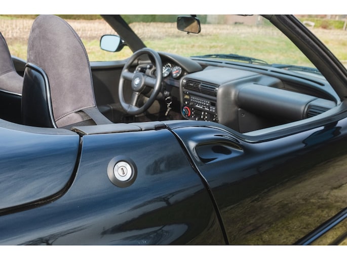 Die charakteristischen Schiebetüren und alle einzigartigen Z1-Details sind perfekt erhalten und funktionieren wie vorgesehen. Alles an diesem Fahrzeug ist authentisch, genau so, wie BMW es 1989 ausgeliefert hat.