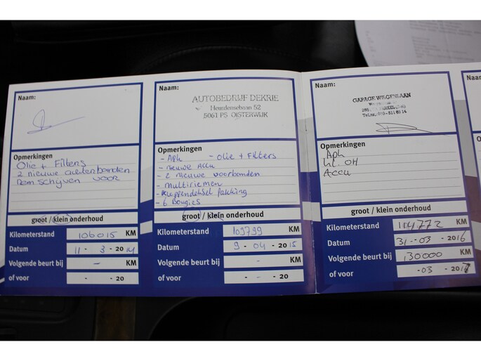 Onderhoudsboekjes: Aanwezig