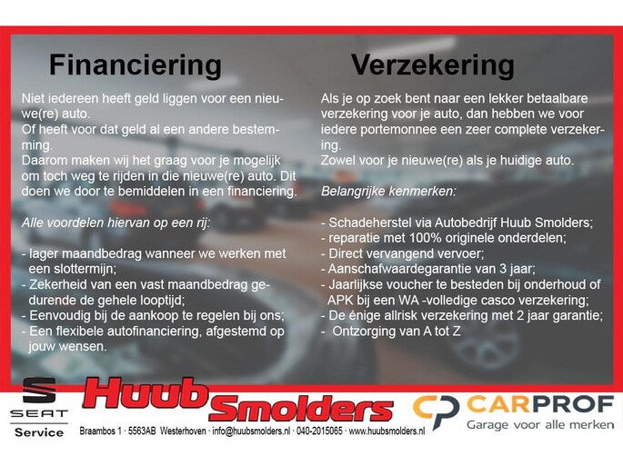 Bel ons nu (040-2015065) of mail ons voor meer informatie (info@huubsmolders.nl) of het afspreken voor een proefrit.