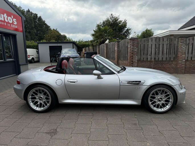 Deze prachtige BMW Z3 Roadster 3.2 M is origineel Nederlands en afkomstig van een echte liefhebber. De auto is voorzien van de kleur Titan zilver metallic en is geleverd door Severs Breeman in Woerden. De auto heeft altijd binnen gestaan en kwam alleen buiten als het weer er naar was. De auto is voorzien van 2 eisenmann einddempers met Reuter motorsport eindtips, kw instelbare vering, originele BBS RS2 breedset velgen. Alle originele delen zijn bij de auto aanwezig, evenals de hard top inclusief afdekhoes en standaard. De auto is uiteraard bij ons te bezichtigen, dit ook alleen bij mooi weer!