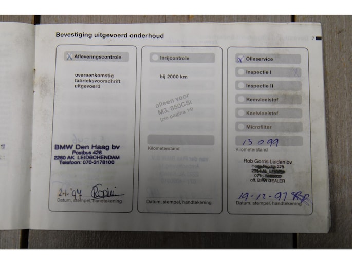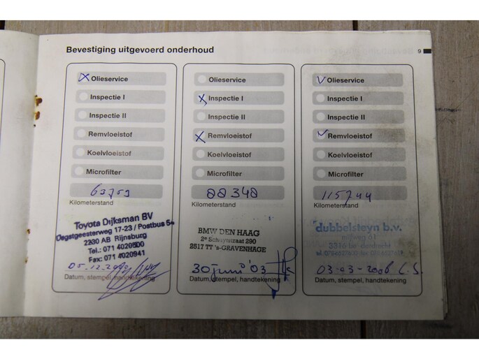 Onderhoudsboekjes: Aanwezig