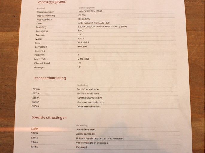 KIJKT U GERUST OP ONZE WEBSITE VOOR EEN UITGEBREIDE FOTOREPORTAGE! Rechtstreeks van de eerste eigenaar: Prachtige BMW Z3 in het Arctic Silver met Taninroord + zwart interieur, in zeer nette staat, zowel interieur als exterieur. Compleet met alle boekjes en volledige historie, kilometerstand aantoonbaar NAP logisch. Deze BMW is voorzien van o.a. : elektrische stoelen, sportstuur, Radio CD/MP3 speler, elektrische ramen, softtop, vol leder interieur afdekhoes, 16 inch lichtmetalen wielen, etc.. Komt u gerust langs voor een goede indruk van deze keurige BMW Z3 Roadster!