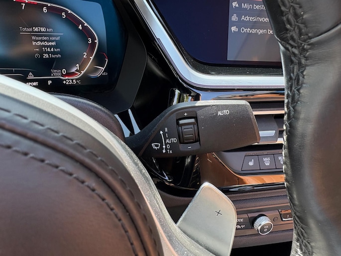 De indeling van het digitale dashboard is zo ingericht dat u met één blik precies weet wat u weten wilt. Nekkramp en verdraaide schouders zijn verleden tijd. Door de achteruitrijcamera is iedere meter achter de auto glashelder in beeld. U weet altijd hoe de auto eraan toe is dankzij Connected Services. Ook handig voor de garage en de wegenwacht. Even de app uitlezen en klaar! Onderweg kunt u veilig genieten van het audio-installatiesysteem met DAB-radio en het navigatiesysteem. Want in deze BMW bedient u ze vanaf het stuurwiel. Onbedoeld snijden na het inhalen gebeurt niet meer, dankzij de achteropkomend verkeer waarschuwing. De BMW is standaard voorzien van: automatische airconditioning, sportstuur met schakelpaddels, regensensor, cruise control, keyless entry en automatisch dimmende binnenspiegel.