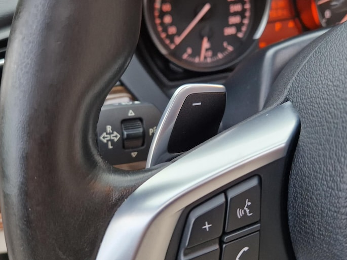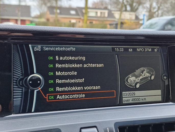 In deze auto beschikt u over een BMW Navigatiesysteem Professional met geïntegreerde Bluetooth-interface en Apps. Het Audio-installatiesysteem biedt glasheldere geluidskwaliteit. U bedient dit veilig via het lederen Sportstuur met schakel-paddles. Naast het Navigatiesysteem treft u in het grote scherm de Boordcomputer aan evenals het Park Distance Control. Verder is de auto uitgerust met Cruise Control met remfunctie, Stuurwielverwarming, Licht- en Regenpakket en vele andere extra’s aan.