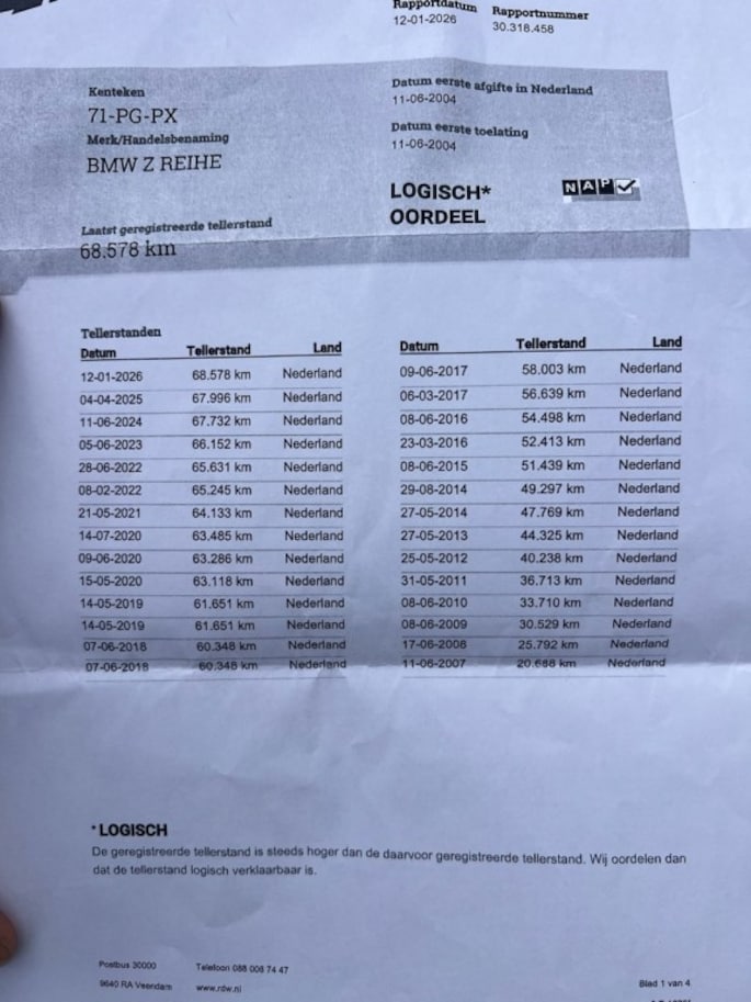Kilometerstand gecontroleerd